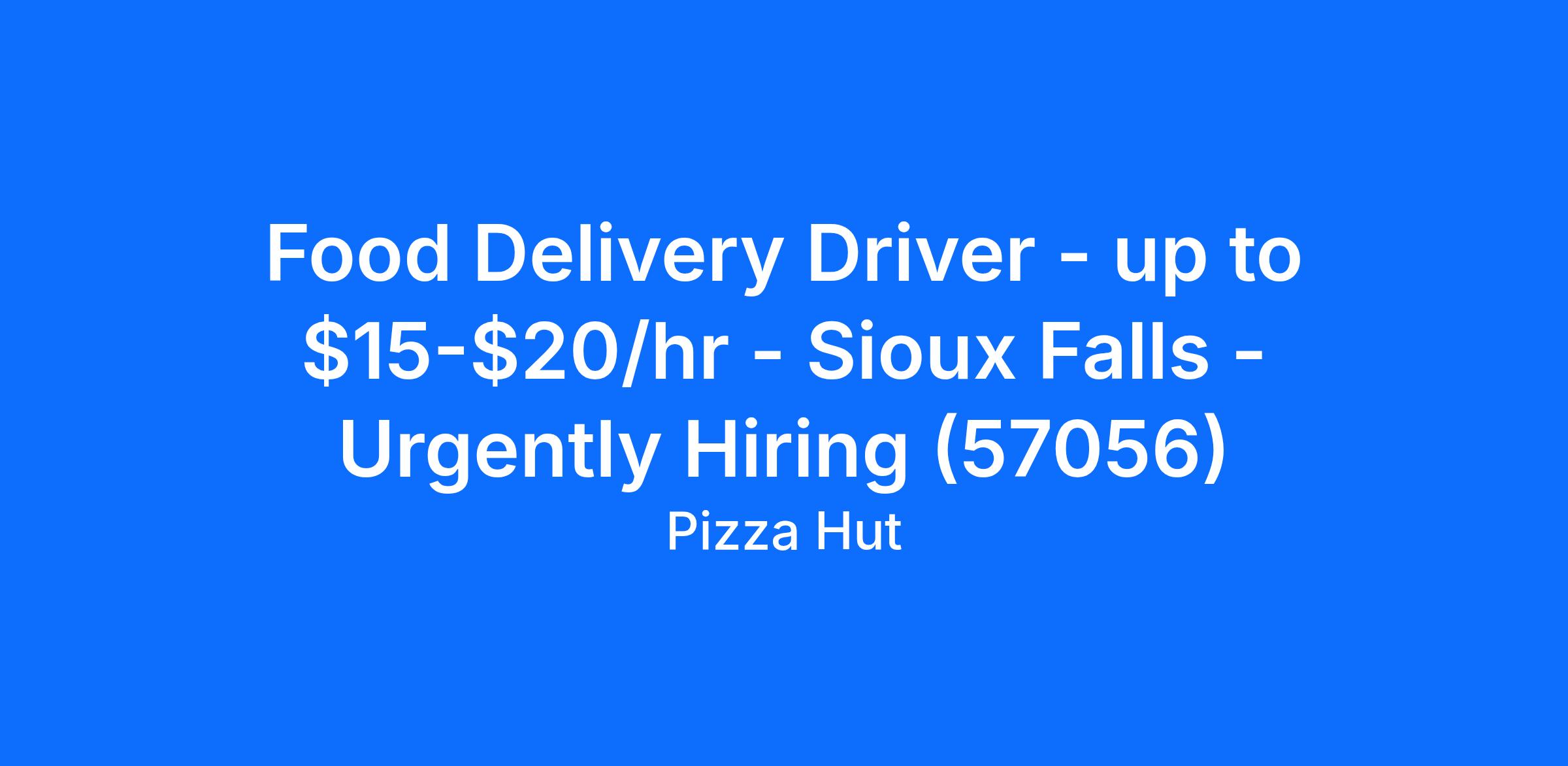 Food Delivery Driver - up to $15-$20/hr - Sioux Falls - Urgently Hiring (57056)