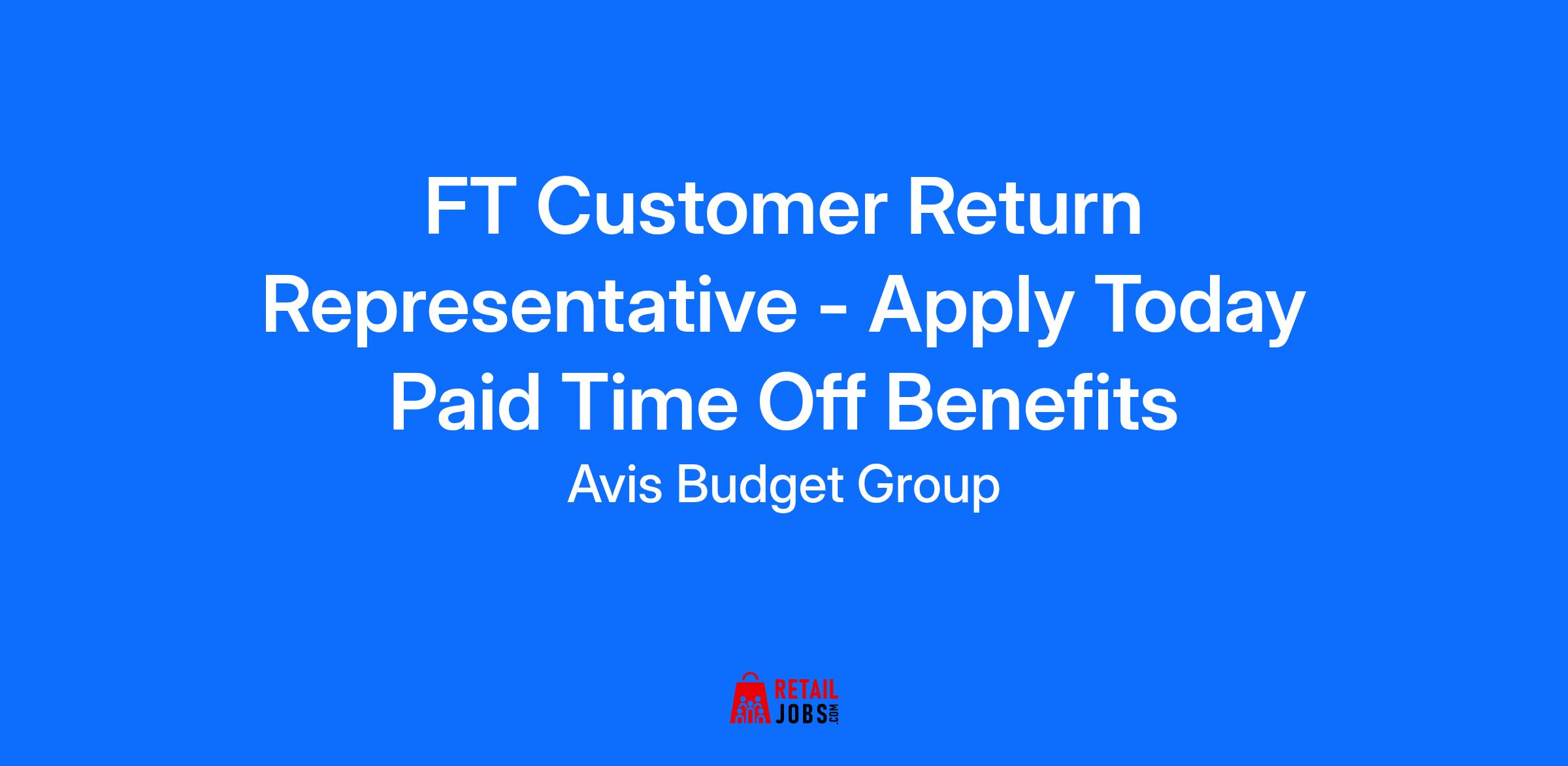 Customer Return Representative Pay Rate:$17.50/hour Immediately hiring! We are now seeking driven and energetic people, like you, to join our growing Avis Budget Group enterprise. You'll be an appreciated and valued addition to our team, putting a smile on our customers' faces! What You'll Do: In this outdoor role, you will help customers return their rental cars. This includes meeting and greeting customers, securing keys, recording mileage, gas levels, and damage to our cars and checking our cars into our computer system while providing excellent customer service. Perks You'll Get: Bi-weekly hourly wage (New York and Puerto Rico: weekly wage) On the job training to learn our business and enhance your professional skills Paid time off Medical, dental and other insurance Flexible spending account opportunity to contribute up to $270 as a tax-free benefit for public transportation or parking expenses Retirement benefits (401k) Employee discounts, including discounted car rental and discounted prices on the purchase of Avis/Budget cars Above perks may vary based on full-time/part-time status and location What We're Looking For: High School Diploma (or equivalent) Valid Driver's License Basic computer skills (typing, data entry) Effective verbal communication skills Willingness to work outdoors Flexibility to work all shifts Must be able to stand, walk or move throughout rental lot, enter/exit vehicles for prolonged periods and drive a variety of vehicles Must be 18 years of age and legally authorized to work in the United States This position requires regular, on-site presence and cannot be performed remotely 6 months retail customer service experience is a bonus! Who We Are: Here at Avis Budget Group, you will be joining a team of 25,000 driven people, performing with purpose. Together, we're moving the future of transportation forward with our innovative, customer-focused solutions. Our culture is performance driven, where we encourage and support each other to be at our best through leadership, training, tools, and rewards. We are proud to make a positive difference to the lives of our colleagues, customers, and communities where we operate. Avis Budget Group is an Equal Opportunity Employer - Qualified applicants will receive consideration for employment without regard to their race, color, religion, sex, sexual orientation, gender identity, national origin, disability, status as a protected veteran or any other category protected by applicable law. This advertisement does not constitute a promise or guarantee of employment. This advertisement describes the general nature and level of this position only. Essential functions and responsibilities may change as business needs require. The compensation and benefits information is accurate as of the date of this posting. The Company reserves the right to modify this information at any time, with or without notice, subject to applicable law. This position may be with any affiliate of Avis Budget Group.