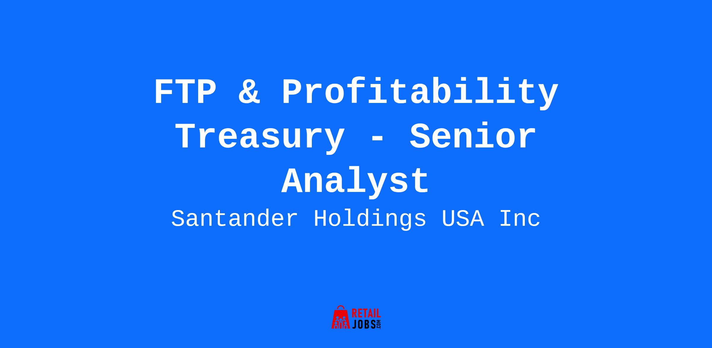 FTP & Profitability Treasury - Senior Analyst Country: United States of America Your Journey Starts Here: Santander is a global leader and innovator in the financial services industry. We believe that our employees are our greatest asset. Our focus is on fostering an enriching journey that empowers you to explore diverse career opportunities while nurturing your personal growth. We are committed to creating an environment where continuous learning and development are prioritized, enabling you to thrive both professionally and personally. Here, you will find ample opportunities to connect and collaborate with talented colleagues from around the world, sharing insights and driving innovation together. Join us at Santander, where you are supported by a culture of engagement and a commitment to your success. An exciting journey awaits, if you are interested in exploring the possibilities We Want to Talk to You! The Difference You Make: The Senior Analyst, supports the day-to-day operations in (Funds Transfer Pricing, Asset-Liability Management, Interest Rate Risk, Liquidity Risk, Market Risk). The incumbent provides analysis in support of operations. Manages and analyzes FTP, profitability, interest rate risk on behalf of the company. Formulates and updates policies and guidelines on the planning and management of the company's monetary resources. Ensures optimization of income and profitability. Day-to-day execution of operations in (FTP, liquidity risk, market risk, interest-rate risk, profitability). Validate the accuracy of internal reporting of financial and operational data. Perform variance, reconciliation and forecasting analysis of key financial data. Ensure adherence to established standards and risk limits. Contribute to a strong internal control environment by executing and reporting on SOX controls. Ensures treasury policies, practices and procedures are understood and followed. Communicate effectively with internal stakeholders. What You Bring: To perform this job successfully, an individual must be able to perform each essential duty satisfactorily. The requirements listed below are representative of the knowledge, skill, and/or ability required. Reasonable accommodations may be made to enable individuals with disabilities to perform the essential functions. Bachelor's Degree: Finance, Economics, Business or equivalent field. - Required. 3 Years Financial planning, analysis or related experience - Required. 3 Years Experience in 3 Years Funds Transfer Pricing ,Liquidity Risk, Interest-Rate Risk Management - Preferred. Ability to work well within a team, prioritize tasks and handle numerous assignments simultaneously. Ability to convey a sense of urgency and drive. Strong verbal and written communication skills in interacting with internal stakeholders. Strong interpersonal, supervisory, and customer service skills required. Excellent analytical, organizational and project management skills. Detail oriented with ability to research, organize and analyze financial data. Strong project management skills. Advanced in MS Word, MIS Excel, QRM, MS Outlook. Certifications: CTP : (Certified Treasury Professional) - Preferred. It Would Be Nice For You To Have: Established work history or equivalent demonstrated through a combination of work experience, training, military service, or education. Experience in Microsoft Office products. What Else You Need To Know : The base pay range for this position is posted below and represents the annualized salary range. For hourly positions (non-exempt), the annual range is based on a 40-hour work week. The exact compensation may vary based on skills, experience, training, licensure and certifications and location. Base Pay Range Minimum: $56,250.00 USD Maximum: $95,000.00 USD Link to Santander Benefits: Santander Benefits - 2025 Santander OnGoing/NH eGuide (foleon.com) Risk Culture: We embrace a strong risk culture and all of our professionals at all levels are expected to take a proactive and responsible approach toward risk management. EEO Statement: At Santander, we value and respect differences in our workforce. We actively encourage everyone to apply. Santander is an equal opportunity employer. All qualified applicants will receive consideration for employment without regard to race, color, religion, sex, sexual orientation, gender identity, national origin, genetics, disability, age, veteran status or any other characteristic protected by law. Working Conditions : Frequent minimal physical effort such as sitting, standing and walking is required for this role. Depending on location, occasional moving and lifting light equipment and/or furniture may be required . Employer Rights: This job description does not list all of the job duties of the job. You may be asked by your supervisors or managers to perform other duties. You may be evaluated in part based upon your performance of the tasks listed in this job description. The employer has the right to revise this job description at any time. This job description is not a contract for employment and either you or the employer may terminate your employment at any time for any reason. What To Do Next : If this sounds like a role you are interested in, then please apply. We are committed to providing an inclusive and accessible application process for all candidates. If you require any assistance or accommodation due to a disability or any other reason, please contact us at TAOps@santander.us to discuss your needs. Primary Location: Boston, MA, Boston Other Locations: Massachusetts-Boston Organization: Santander Holdings USA, Inc.