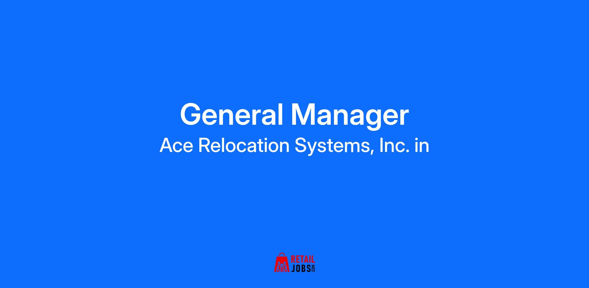 Ace Relocation Systems has been a dynamic leader and innovator in the relocation industry for over 40 years. Our commitment to reinvesting in equipment, modern facilities, cutting-edge technology, and an exceptional team has positioned us as a forward-thinking, customer-focused organization. We pride ourselves on delivering creative solutions with an unwavering dedication to safety and service excellence. Beyond our business, we take pride in giving back by supporting impactful charities like Move for Hunger, the American Cancer Society, and Truckers Against Trafficking. If you're seeking a rewarding career with a tech-forward, people-first company that values its employees and serves a diverse range of esteemed clients, we invite you to join Ace Relocation Systems! Are you? Team-oriented? Passionate about delivering exceptional customer service? Enjoy a fun, supportive and collaborative culture? If you answered yes, we want you to come to be a part of the Ace Relocation Team! Position: The General Manager is responsible for all daily functions of the facility and sets the tone with positive leadership and a can-do attitude . Your management objective is absolute customer satisfaction while at the same time driving profitability and producing gross profit through efficiency and honesty and providing a pleasurable place to work for our fellow employees. Priorities: Oversee activities directly related to providing services. Review financial statements, sales and activity reports, and other performance data to measure productivity and goal achievement and to determine areas needing cost reduction and program improvement. Follow in real time open capacity, equipment status and quality scores. Know the source and ROI of all sources of revenue, including national account, GSA, Military, private client and commercial channels. Qualifications/Skills: • At least 7 years of related management experience in the moving & storage or similar transportation industry • Ability to foster teamwork, multi-task and prioritize. Collaborative and team-oriented environment Paid vacation/sick/holidays Comprehensive benefits package including 401k with match The pay range is $120,000 to $140,000 annual equivalent. Starting pay ratewill vary based on criteria such as location, experience, qualifications, and the terms of any applicable agreement. Dependent on the length of service, hours worked, and applicable agreements, benefits include medical, dental, vision, life, and optional disability insurance, sick pay of 2.66 hours for every 80 hours worked, Vacation pay of 3.08hours for every 80 hours worked, paid holidays (6 days annually), three personal days (prorated based on start date), bereavement pay and retirement benefits. The General Manager position is considered safety sensitive and will be subject to the company's random drug test program. Please note that we do not wish to be contacted by external recruiters regarding job candidates. All applications must be submitted through our official channels. We Take Equality Seriously: Indeed, all aspects of employment with the Company will be governed based on merit, competence, and qualifications and will not be influenced in any manner by an individual's race, religion, color, national origin, ancestry, citizenship status, physical disability, mental disability, genetic information (including testing and characteristics), sex (including pregnancy, lactation, childbirth or related medical conditions), gender identity, age (40 and over), sexual orientation, veteran status, uniformed service member status or any other status protected by local, state or federal law. Minimum Qualifications (Knowledge, Skills, and Abilities): The following are required to enable job holders to perform the essential functions of the job Bachelor's degree or equivalent work experience At least 7 years of related experience Ability to foster teamwork Proficient in Microsoft Office Suite products including Word, Excel, PowerPoint, and Outlook. Competent with Microsoft Teams. General Manager (Project Management) Who we are: Ace Relocation Systems has been a dynamic leader and innovator in the relocation industry for over 40 years. Our commitment to reinvesting in equipment, modern facilities, cutting-edge technology, and an exceptional team has positioned us as a forward-thinking, customer-focused organization. We pride ourselves on delivering creative solutions with an unwavering dedication to safety and service excellence. Beyond our business, we take pride in giving back by supporting impactful charities like Move for Hunger, the American Cancer Society, and Truckers Against Trafficking. If you're seeking a rewarding career with a tech-forward, people-first company that values its employees and serves a diverse range of esteemed clients, we invite you to join Ace Relocation Systems! Are you? Team-oriented? Passionate about delivering exceptional customer service? Enjoy a fun, supportive and collaborative culture? If you answered yes, we want you to come to be a part of the Ace Relocation Team! Position: The General Manager is responsible for all daily functions of the facility and sets the tone with positive leadership and a can-do attitude . Your management objective is absolute customer satisfaction while at the same time driving profitability and producing gross profit through efficiency and honesty and providing a pleasurable place to work for our fellow employees. Priorities: Oversee activities directly related to providing services. Review financial statements, sales and activity reports, and other performance data to measure productivity and goal achievement and to determine areas needing cost reduction and program improvement. Follow in real time open capacity, equipment status and quality scores. Know the source and ROI of all sources of revenue, including national account, GSA, Military, private client and commercial channels. Qualifications/Skills: • At least 7 years