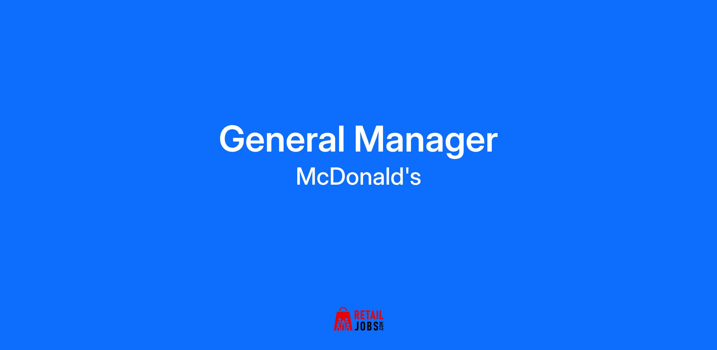 Join to apply for the General Manager role at McDonald's 3 days ago Be among the first 25 applicants Join to apply for the General Manager role at McDonald's This job posting is for a position in a restaurant owned and operated by an independent franchisee and not McDonald’s USA. This franchisee owns a license to use McDonald’s logos and food products, for example, when running the restaurant. However, this franchisee is a separate company and a separate employer from McDonald’s USA. If you are hired for the job described in this posting, the franchisee will be your employer, not McDonald’s USA. Only the franchisee is responsible for employment matters at the restaurant, including hiring, firing, discipline, supervisions, staffing, and scheduling employees. McDonald’s USA has no control over employment matters at the restaurant. McDonald’s USA will not receive a copy of your employment application and it will have no involvement in any employment decisions, including whether you receive an interview for the job or whether you are hired. Description McDonald's Works for Me. I’m going places. I want a satisfying career with good benefits and great opportunities for advancement. I have a lot to offer and I want to grow. The Job for Me – Get a job that inspires your best and moves you forward. Choose your hours. Pursue your education. Build your skills and be yourself. The Team for Me – Our people want to say YES — to working with energy and purpose, finding new talent, providing coaching and direction, honing their leadership skills, and helping to run a business that serves up delicious food and feel-good moments. Does this sound like you? You’ll fit right in. The Company for Me – From here, you can go further than you thought possible. Reach your goals and build your future with college tuition assistance, valuable job training, and retirement benefits. Let’s talk. Make your move. Requirements The General Manager is responsible for running a profitable restaurant and for making sure the restaurant meets McDonald’s critical customer standards of Quality, Service, and Cleanliness. These standards are high, so this is a big job! The General Manager works with his/her leader to set the restaurant’s goals and creates a plan to achieve the goals. To meet restaurant goals, the General Manager doesn’t work alone. He or she leads a team of Department Managers that has specific responsibilities in the restaurant. This means helping the Department Managers to set their own goals, following up on their progress, and providing coaching and direction to improve their Departments. By improving the Departments, the restaurant improves! The General Manager may also be responsible for hiring and developing Department and Shift Managers to make sure that the restaurant has the right team to lead into the future. Ideal candidates should have previous General Manager experience running high volume locations. A background in quick service restaurants is strongly desired, or experience in hospitality or retail. You must be 18 years or older to be a manager in our corporate owned and operated restaurants. Additional Info Along with competitive pay, a General Manager at a McDonald’s Corporate owned restaurant is eligible for incredible benefits including: 2- 3 weeks paid vacation 8 paid holidays, Education through Archways to Opportunity including opportunities to earn a High School degree, college tuition assistance and English classes as a second language Medical, dental and vision coverage Service awards Employee Resource Connection This job posting contains some information about what it is like to work in a McDonald’s restaurant, but it is not a complete job description. People who work in a McDonald’s restaurant perform a number of different tasks every day, and this posting does not list all of the essential functions of this job. By applying to this position, I understand that I am applying to work at a restaurant that is owned and operated by an independent franchisee, not McDonald’s USA. I understand that this franchisee is a separate company and a separate employer from McDonald’s USA. Any information I provide in this application will be submitted only to the independent franchisee, who is the only company responsible for employment matters at this restaurant. I recognize that the independent franchisee alone will make all decisions concerning employment matters, including hiring, firing, discipline, supervision, staffing and scheduling. By applying for a job at a franchisee operated restaurant, I understand that the information I provide will be forwarded to the franchisee organization in order for that organization to reach out to me and process and evaluate my application. I acknowledge that McDonald’s USA will not receive a copy of my employment application and will have no involvement in any employment decisions regarding me, including whether I receive an interview or whether I am hired to work for the franchisee. I understand that I need to contact the franchise organization for information about its privacy practices.Seniority level Seniority levelAssociate Employment type Employment typeFull-time Job function Job functionManagement and Manufacturing IndustriesRestaurants Referrals increase your chances of interviewing at McDonald's by 2x Get notified about new General Manager jobs in Carson, CA . Culver City, CA $90,000.00-$100,000.00 2 weeks ago Hermosa Beach, CA $95,000.00-$120,000.00 6 days ago Los Angeles, CA $100,000.00-$125,000.00 2 weeks ago Torrance, CA $70,000.00-$80,000.00 1 month ago GM, US Enterprise - Global Business Solutions - Los Angeles Los Angeles, CA $163,020.00-$381,086.00 4 weeks ago Los Angeles Metropolitan Area $155,000.00-$175,000.00 2 weeks ago General Manager - West Los Angeles & Beach Cities, CA (Future Opportunities)General Manager - Dignity Health Sports Park Carson, CA $330,000.00-$380,000.00 2 weeks ago We’re unlocki