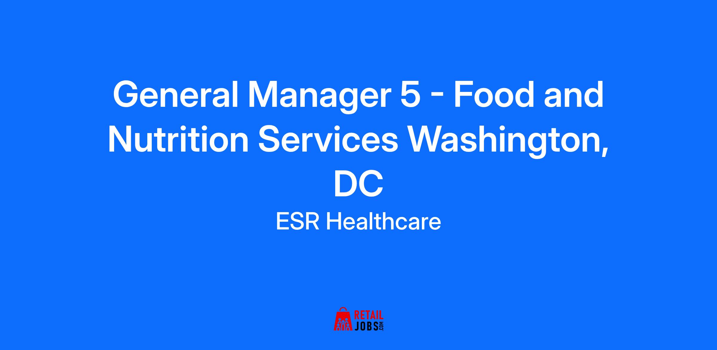 General Manager 5 - Food and Nutrition Services Washington, DC