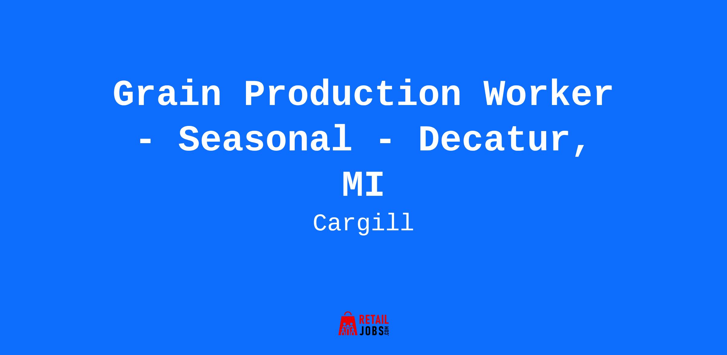 Cargill’s Agricultural Supply Chain (CASC) connects producers and users of grains and oilseeds around the globe through sourcing, storing, trading, processing, and distributing, as well as offering a range of financial, risk management, and customized farmer services. Working at Cargill is an opportunity to thrive – a place to develop your career to the fullest while engaging in meaningful work that makes a positive impact around the globe. We depend on creative, responsible, hardworking individuals like you to operate our business successfully! New, easy-to-apply options are available for this role: chat with our recruiting assistant Ana at careers.cargill.com or text CargillJobs to 60196. Job Type: SeasonalShift(s) Available: 1st.Compensation: $18.00/hr.Sign-On Bonus: $2,000 A Typical Work Day May Include: Performing facility operations such as loading/unloading trucks, vessels, barges, and rail cars, filling/reclaiming grain ground piles, and various other grain handling tasks Basic maintenance and operator care of equipment to ensure ongoing facility operations Providing excellent customer service and engaging with team members Understanding and adhering to all safety policies and procedures Maintaining a safe and clean work environment Other duties as assigned What You Will Need: Must be eligible to work in the United States without visa sponsorship Must be 18 years or older Ability to perform physical job duties which may include bending, lifting up to 50lbs., kneeling, climbing, crawling, and twisting, with or without reasonable accommodation Ability to understand and communicate in English (verbal/written) Basic computer skills Ability to work in varied indoor and outdoor conditions which may include heat, cold, dust, loud noise, etc., with the use of Personal Protective Equipment (PPE) Ability to work in elevated areas (4 feet and above) What Will Put You Ahead: Ability to work overtime including weekends, holidays, or different shifts with advance notice Considered candidates will receive a phone call from a (952) area code. Please note that this position does not include relocation reimbursement. Equal Opportunity Employer, including Disability/Vet. To apply using chat/text, please click Apply Now button OR use this link to create a login to apply. Salary: . Date posted: 10/05/2025