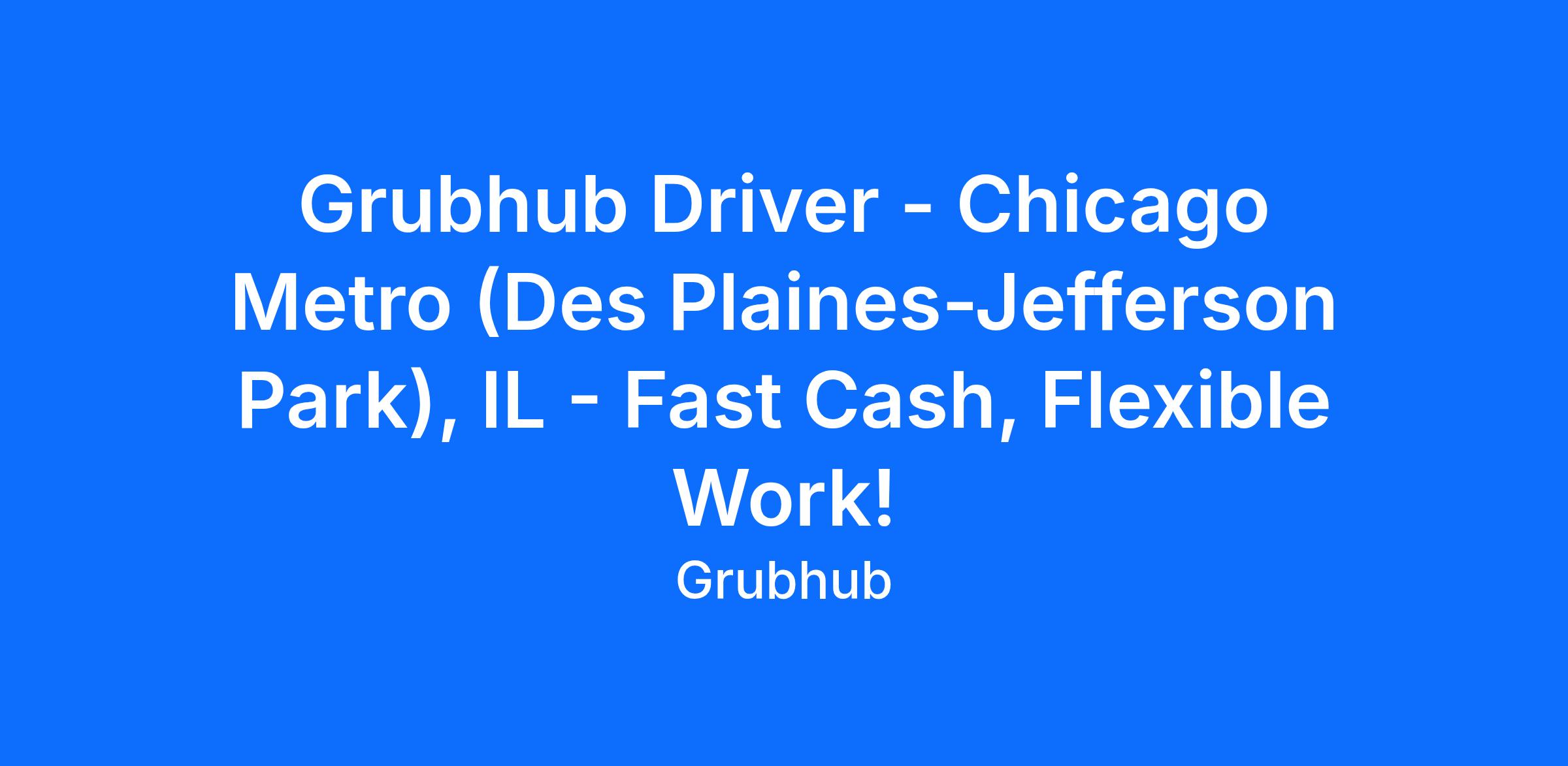 Grubhub Driver - Chicago Metro (Des Plaines-Jefferson Park), IL - Fast Cash, Flexible Work!