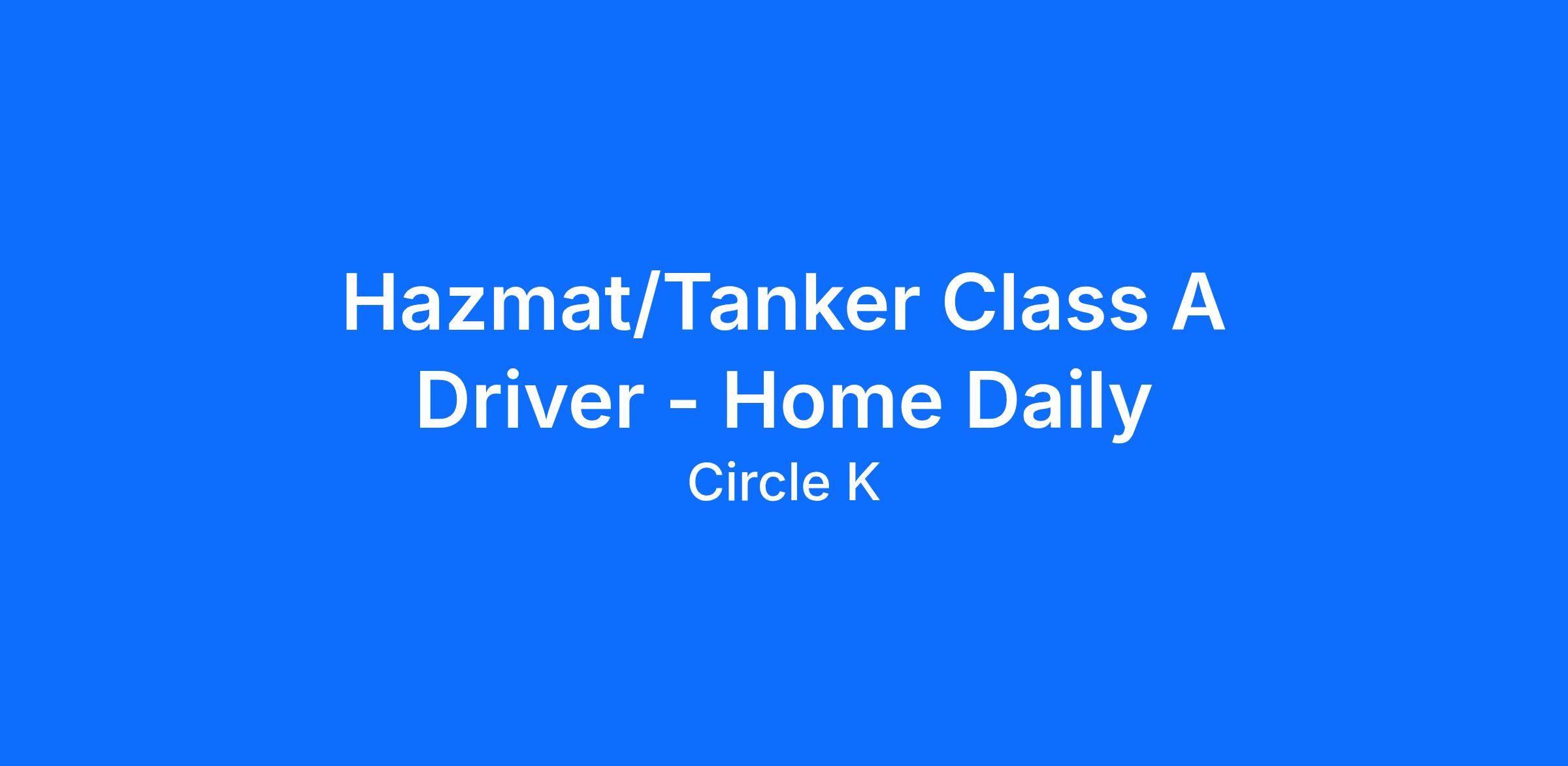 Hazmat/Tanker Class A Driver - Home Daily
