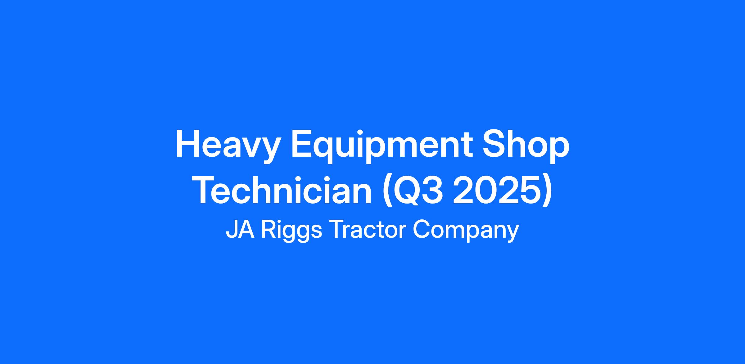 Heavy Equipment Shop Technician (Q3 2025)