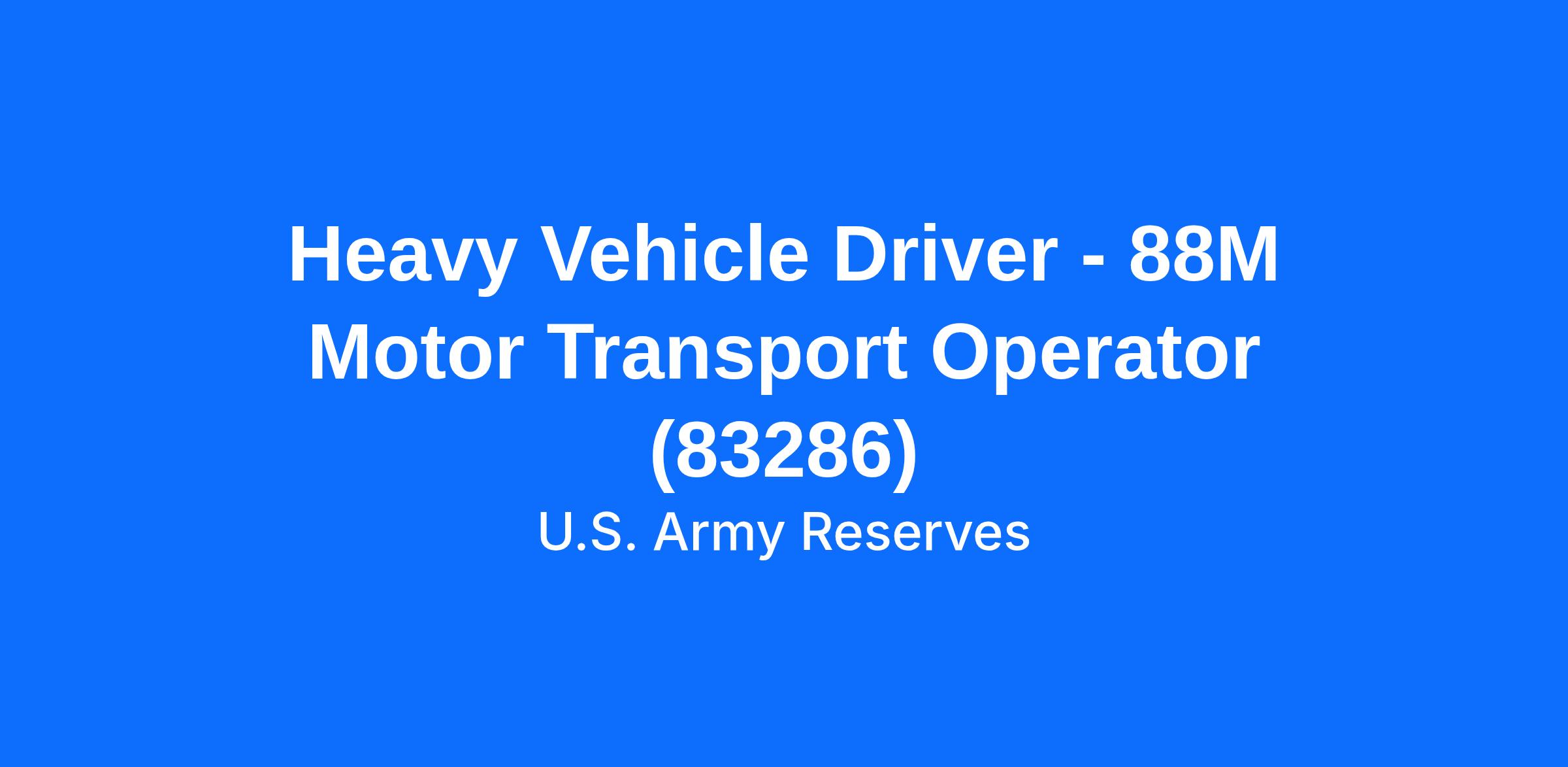 Heavy Vehicle Driver - 88M Motor Transport Operator (83286)