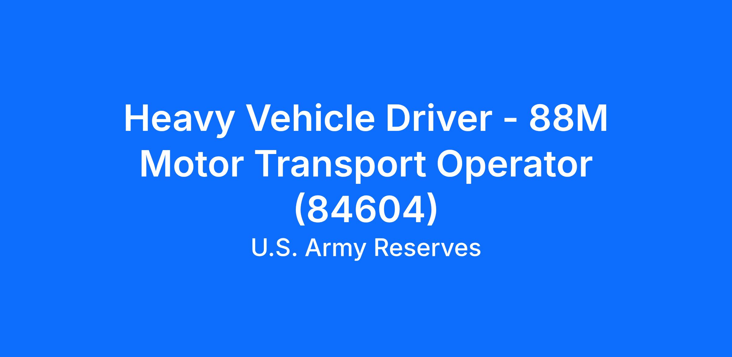 Heavy Vehicle Driver - 88M Motor Transport Operator (84604)