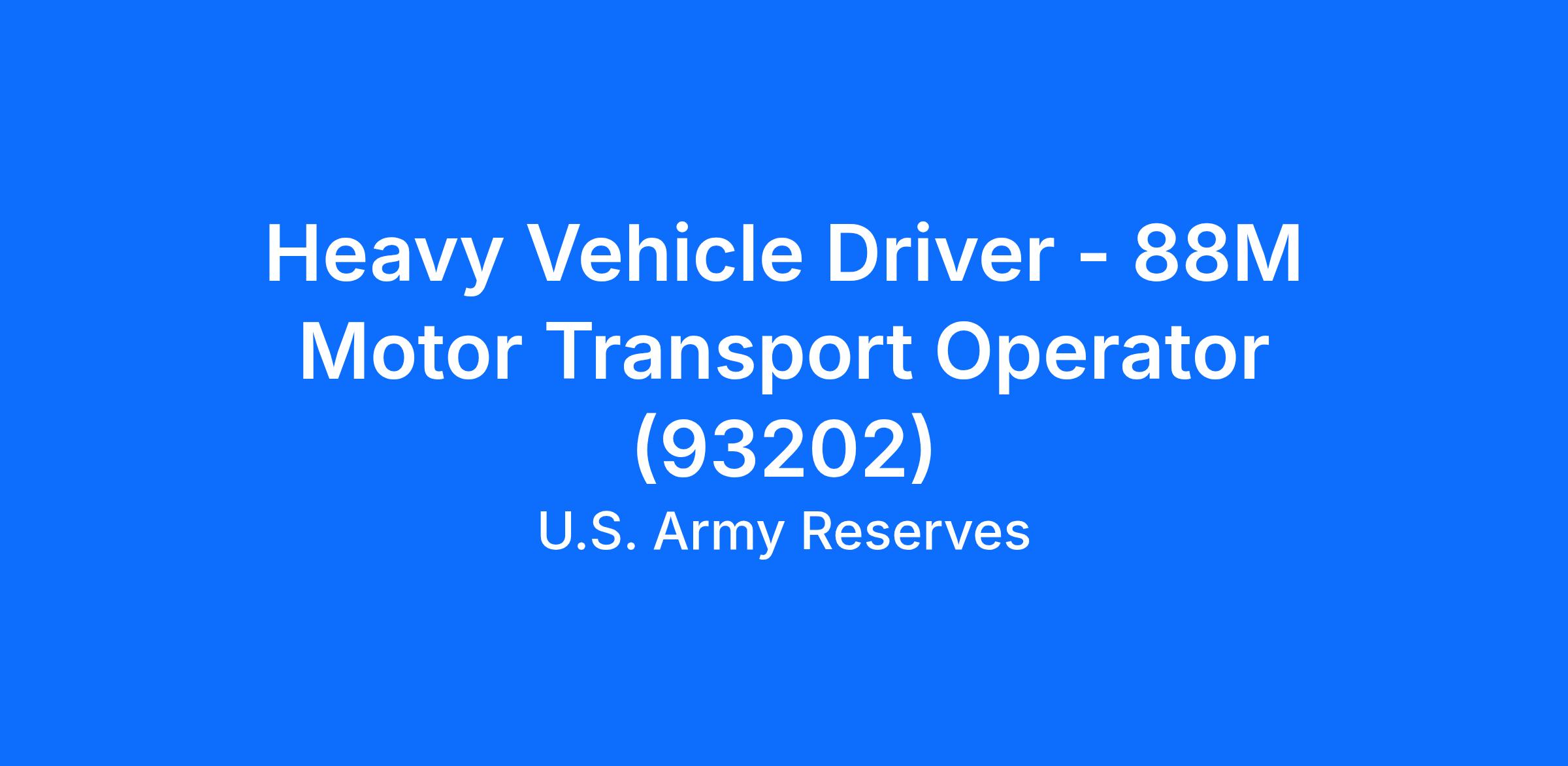 Heavy Vehicle Driver - 88M Motor Transport Operator (93202)