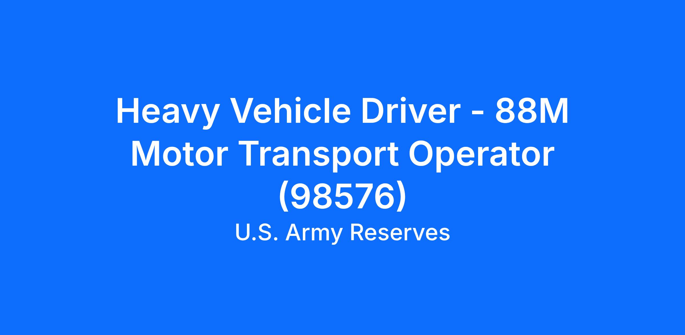 Heavy Vehicle Driver - 88M Motor Transport Operator (98576)