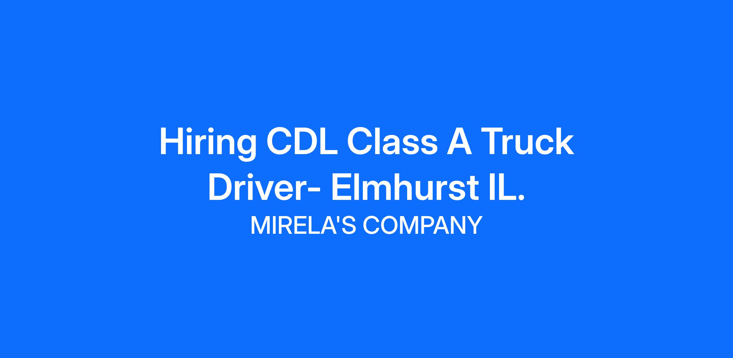 Hiring CDL Class A Truck Driver- Elmhurst IL.