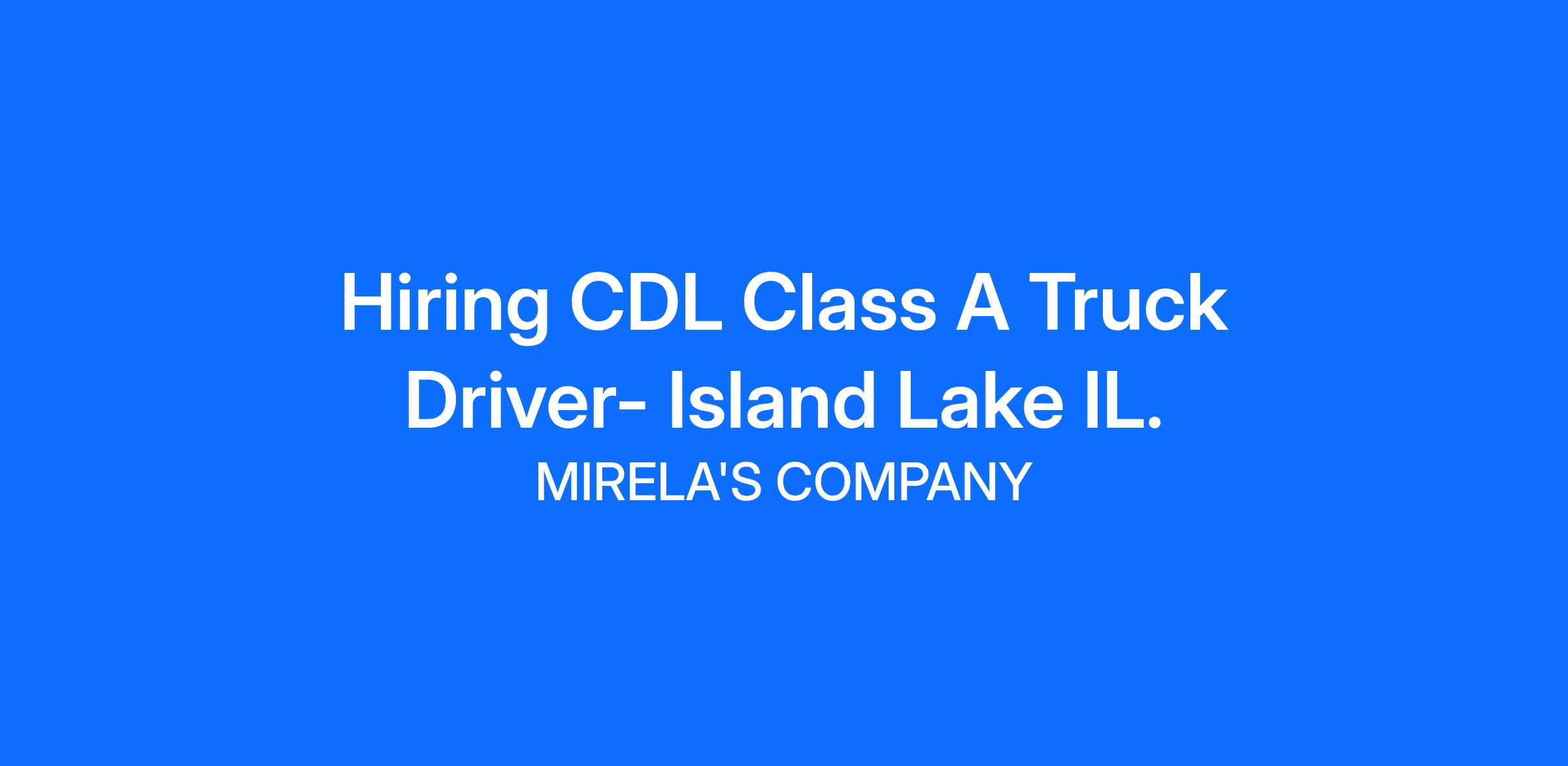 Hiring CDL Class A Truck Driver- Island Lake IL.