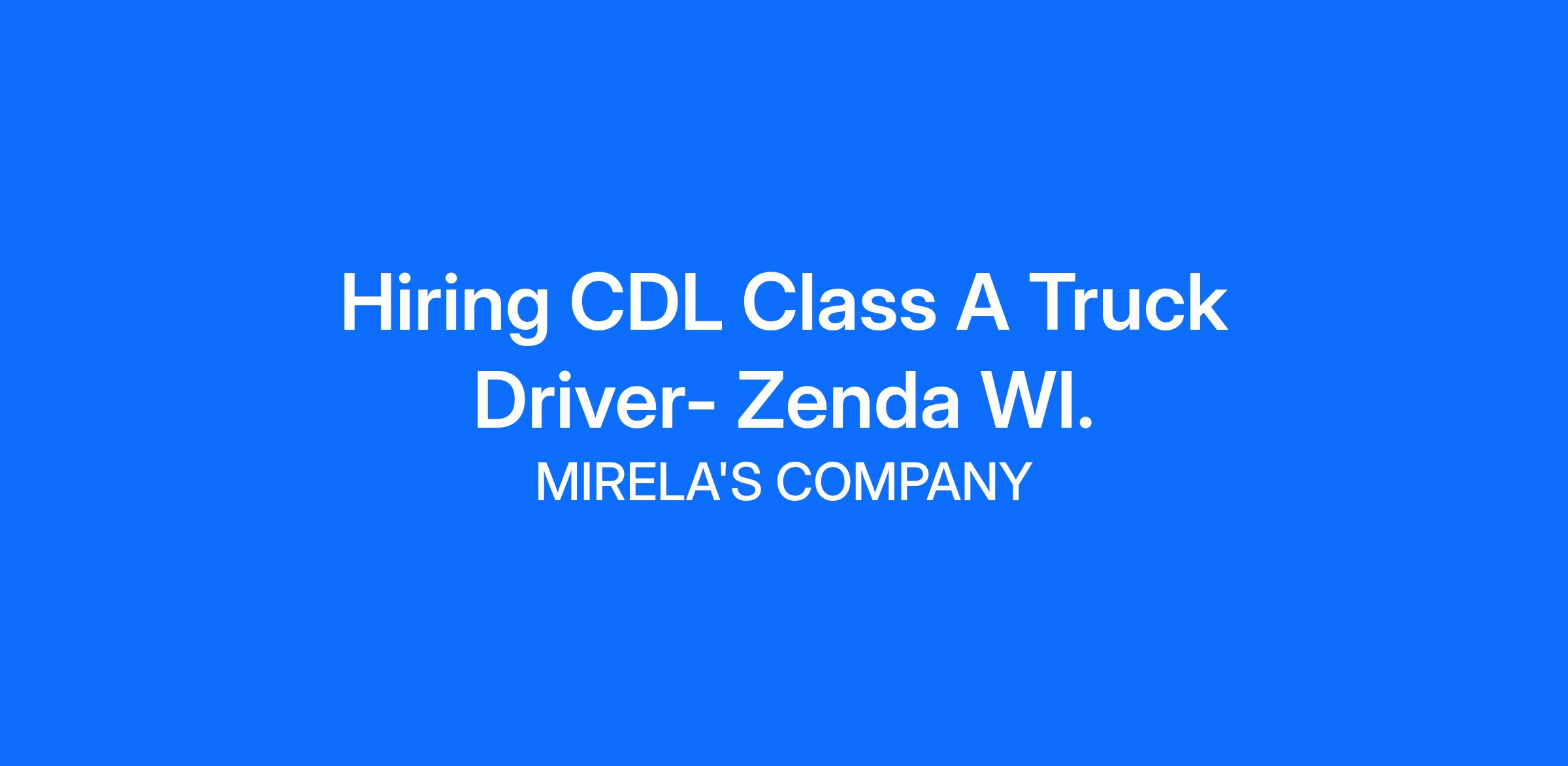 Hiring CDL Class A Truck Driver- Zenda WI.