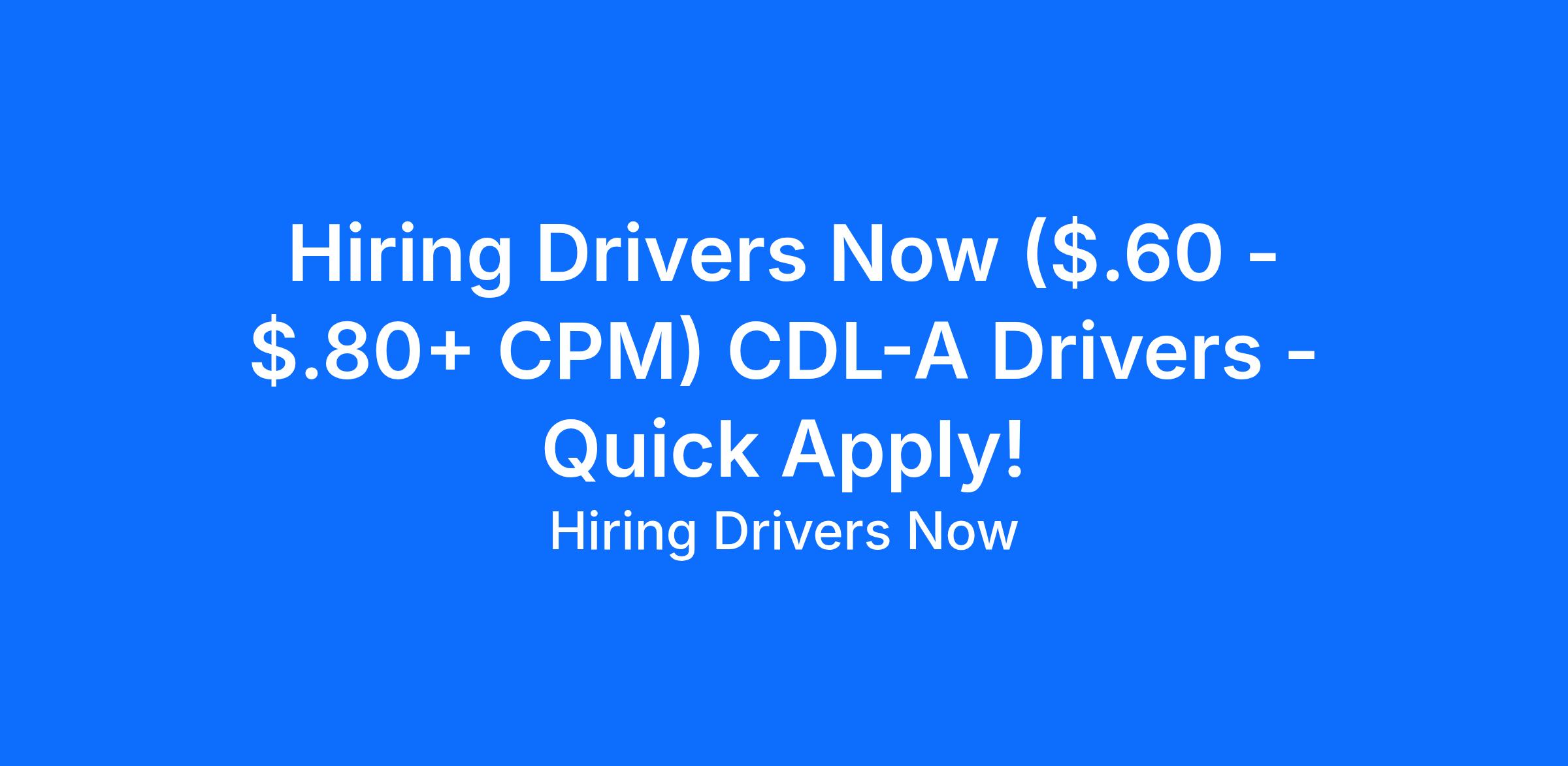 Hiring Drivers Now: CDL-A Drivers avg $.60-$.80 CPM - Hiring All Positions!