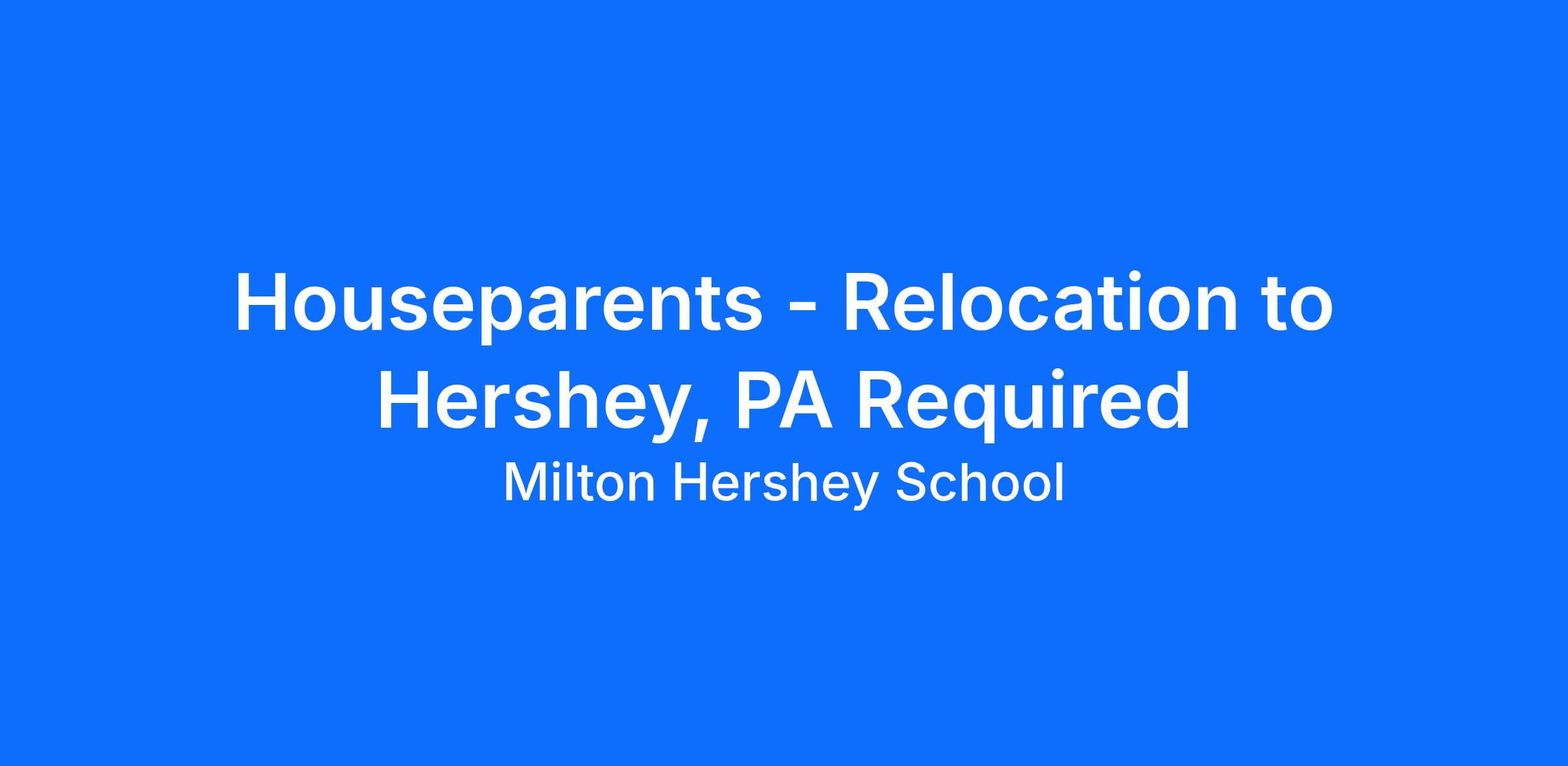 Houseparents - Relocation to Hershey, PA Required