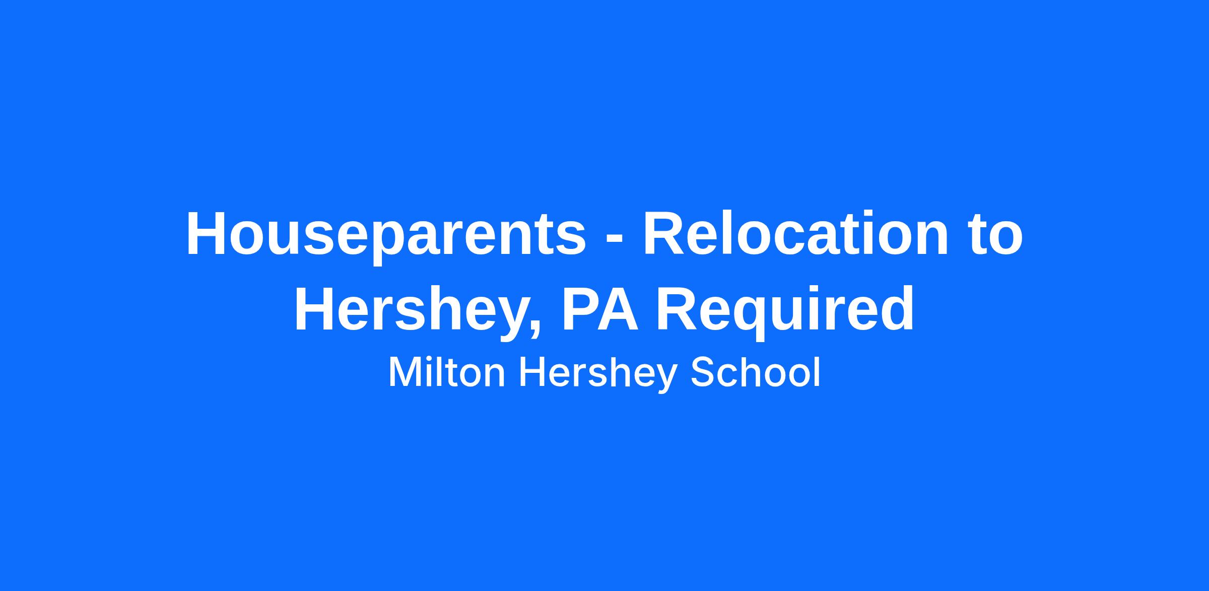Houseparents - Relocation to Hershey, PA Required