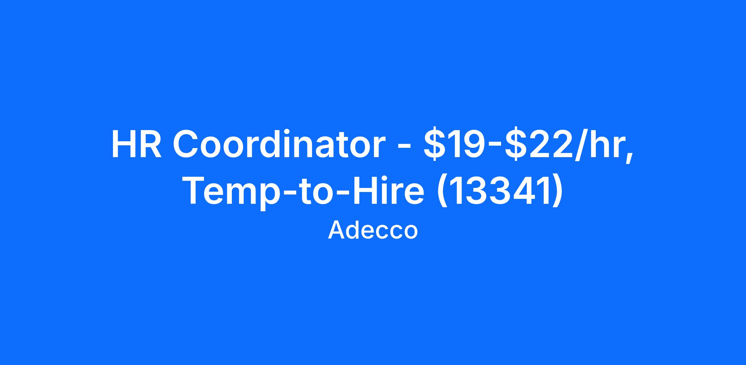 HR Coordinator - $19-$22/hr, Temp-to-Hire (13341)