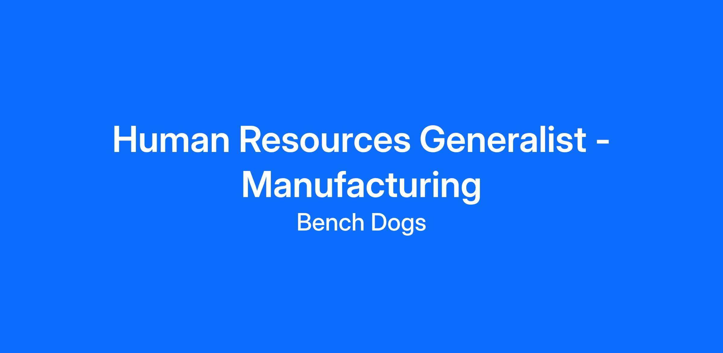 BENCH DOGS JOB OPENING: Human Resources Generalist - Manufacturing