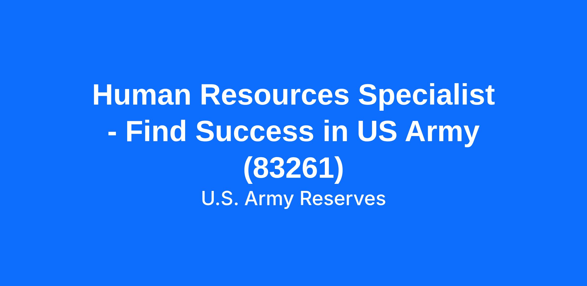 Human Resources Specialist - Find Success in US Army (83261)