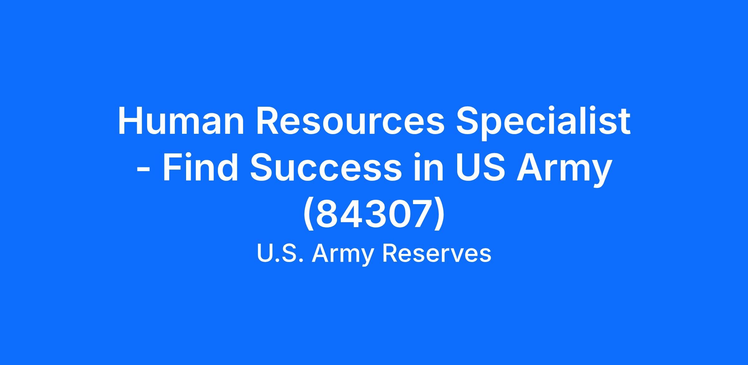 Human Resources Specialist - Find Success in US Army (84307)