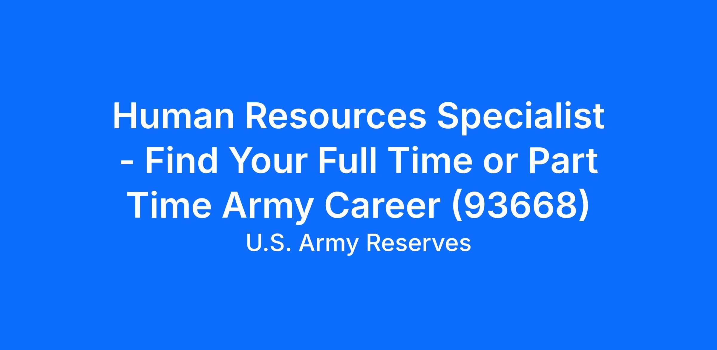 Human Resources Specialist - Find Your Full Time or Part Time Army Career (93668)