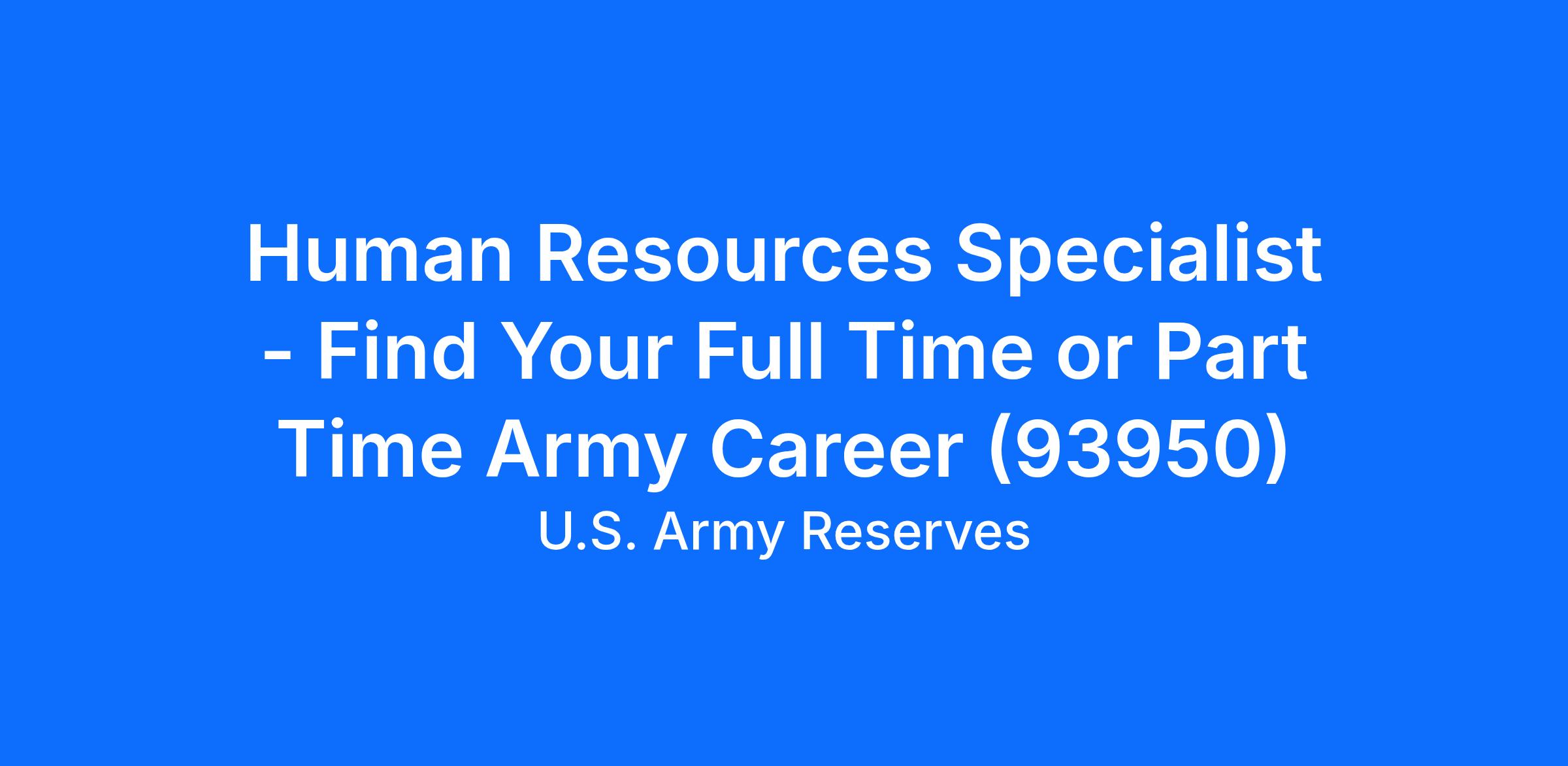Human Resources Specialist - Find Your Full Time or Part Time Army Career (93950)