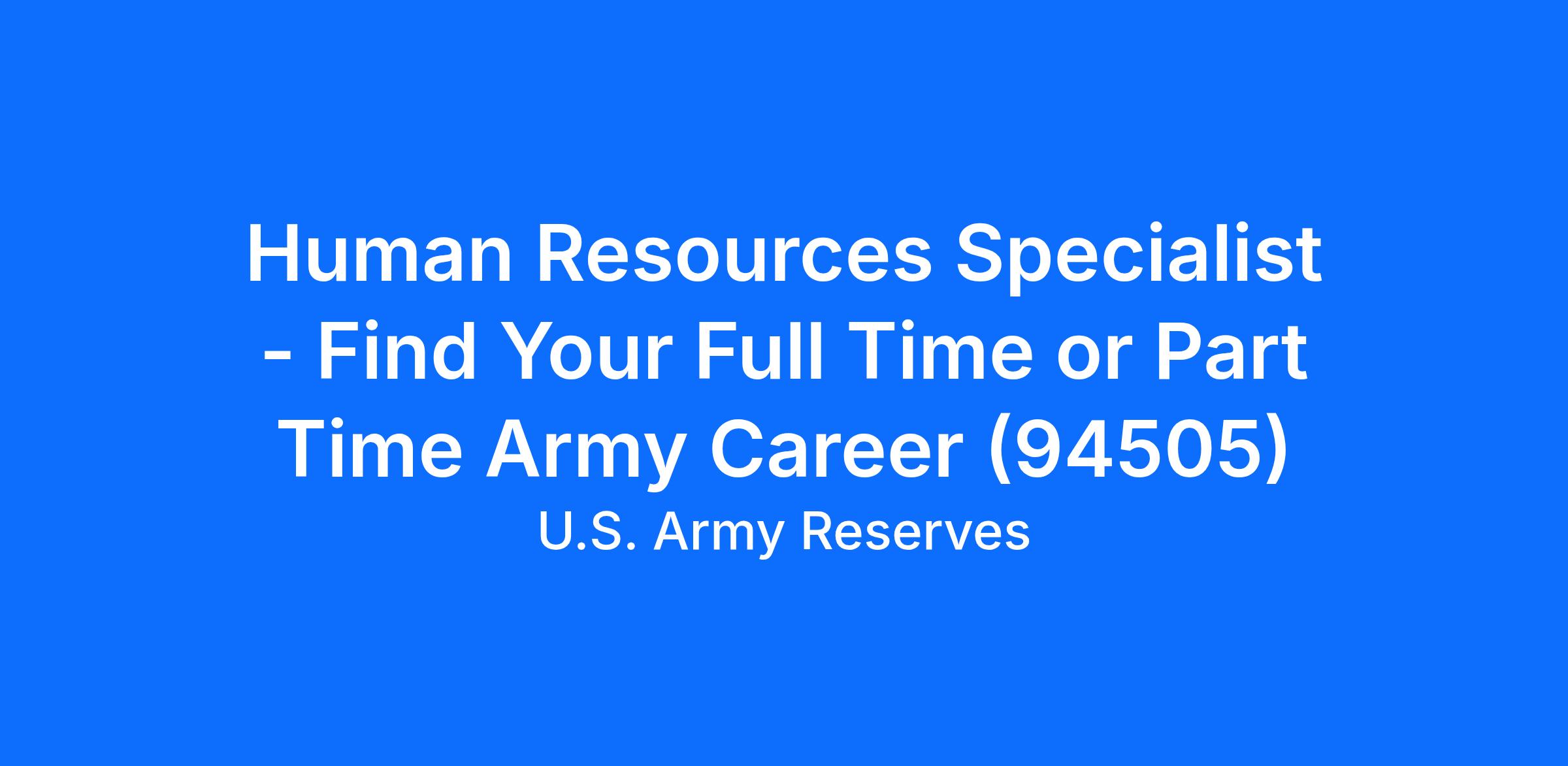 Human Resources Specialist - Find Your Full Time or Part Time Army Career (94505)