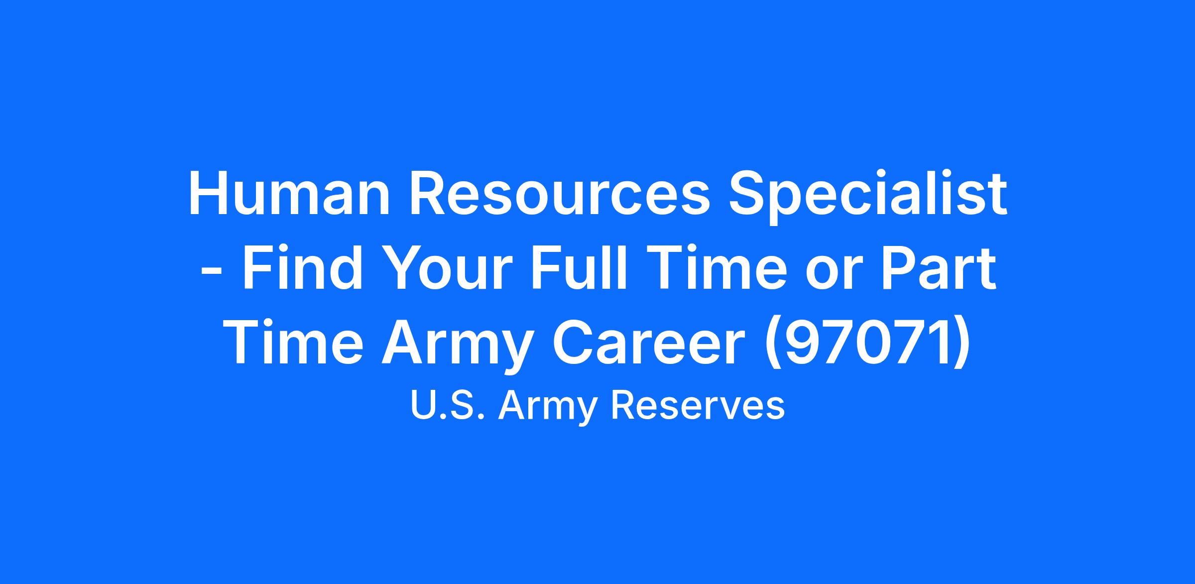 Human Resources Specialist - Find Your Full Time or Part Time Army Career (97071)