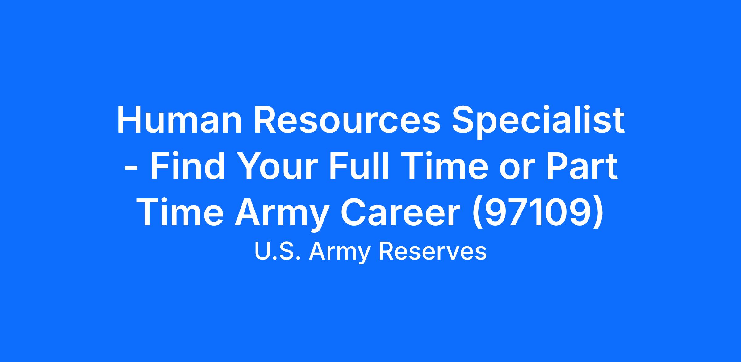 Human Resources Specialist - Find Your Full Time or Part Time Army Career (97109)