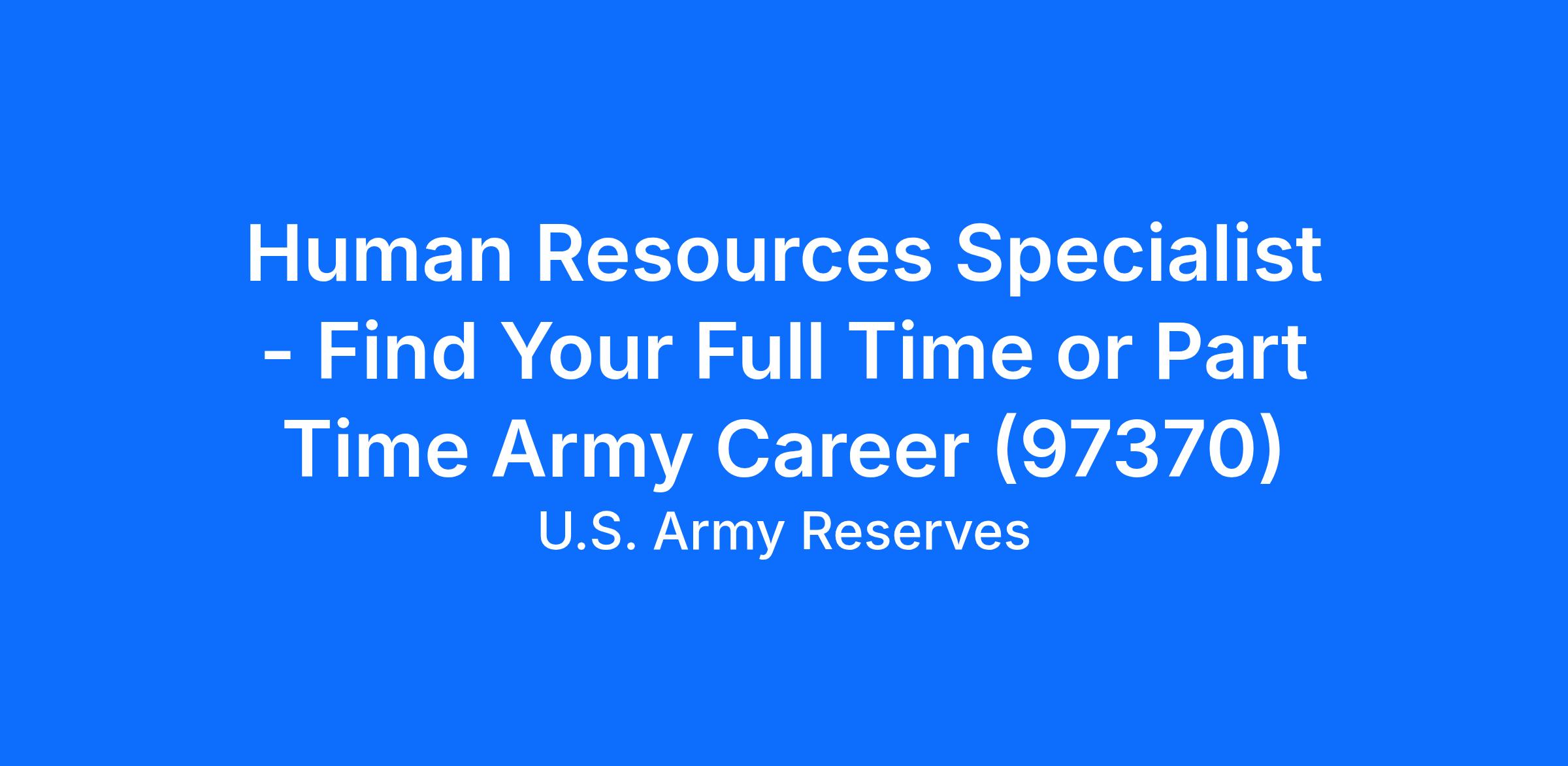 Human Resources Specialist - Find Your Full Time or Part Time Army Career (97370)