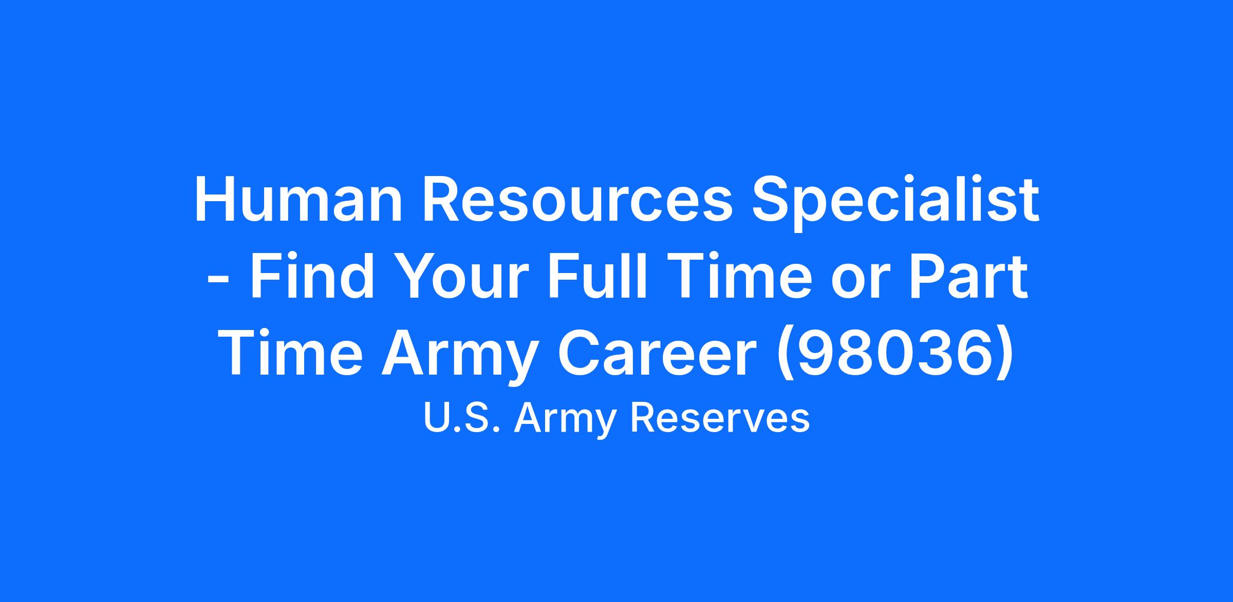 Human Resources Specialist - Find Your Full Time or Part Time Army Career (98036)