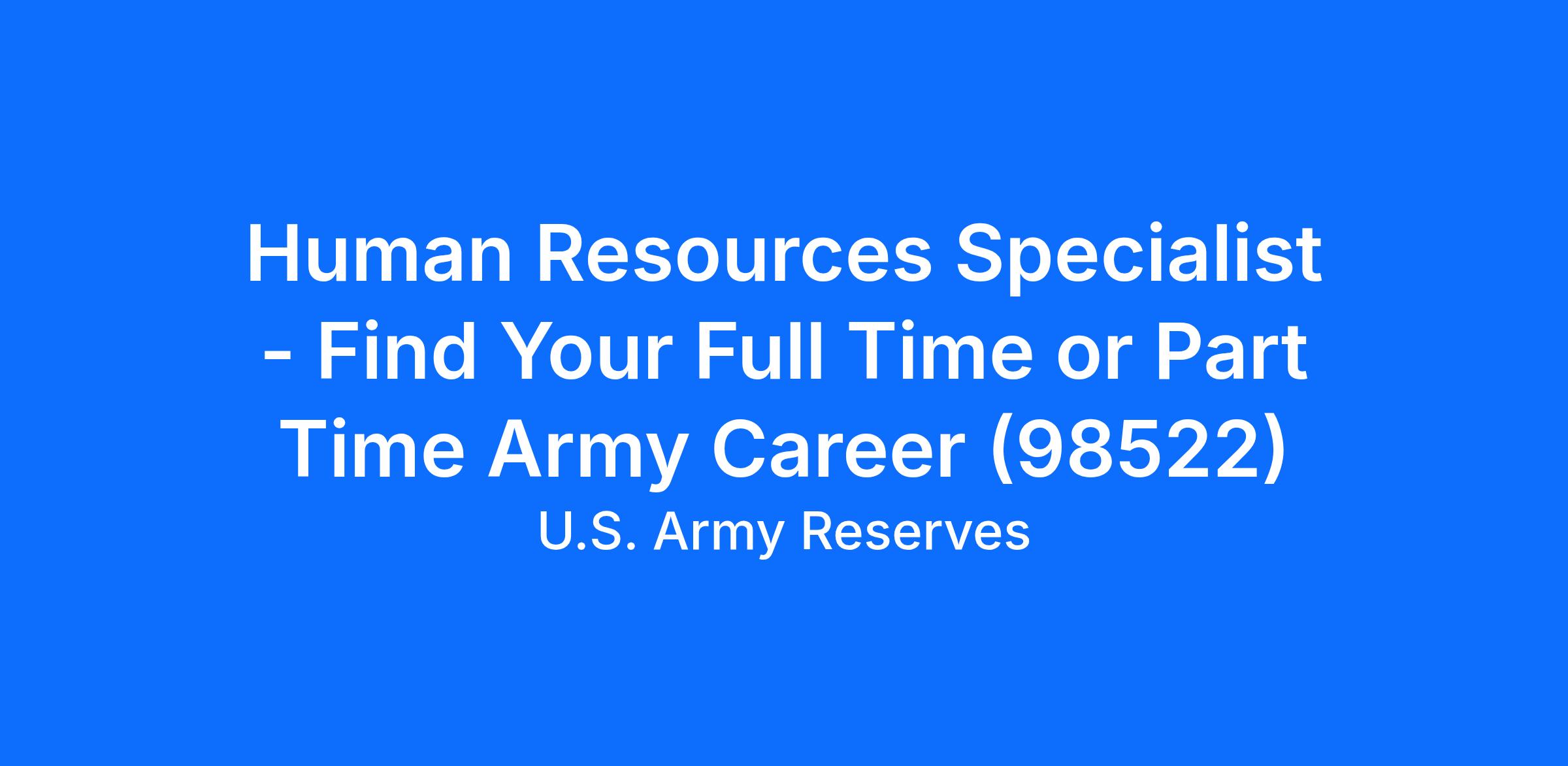 Human Resources Specialist - Find Your Full Time or Part Time Army Career (98522)