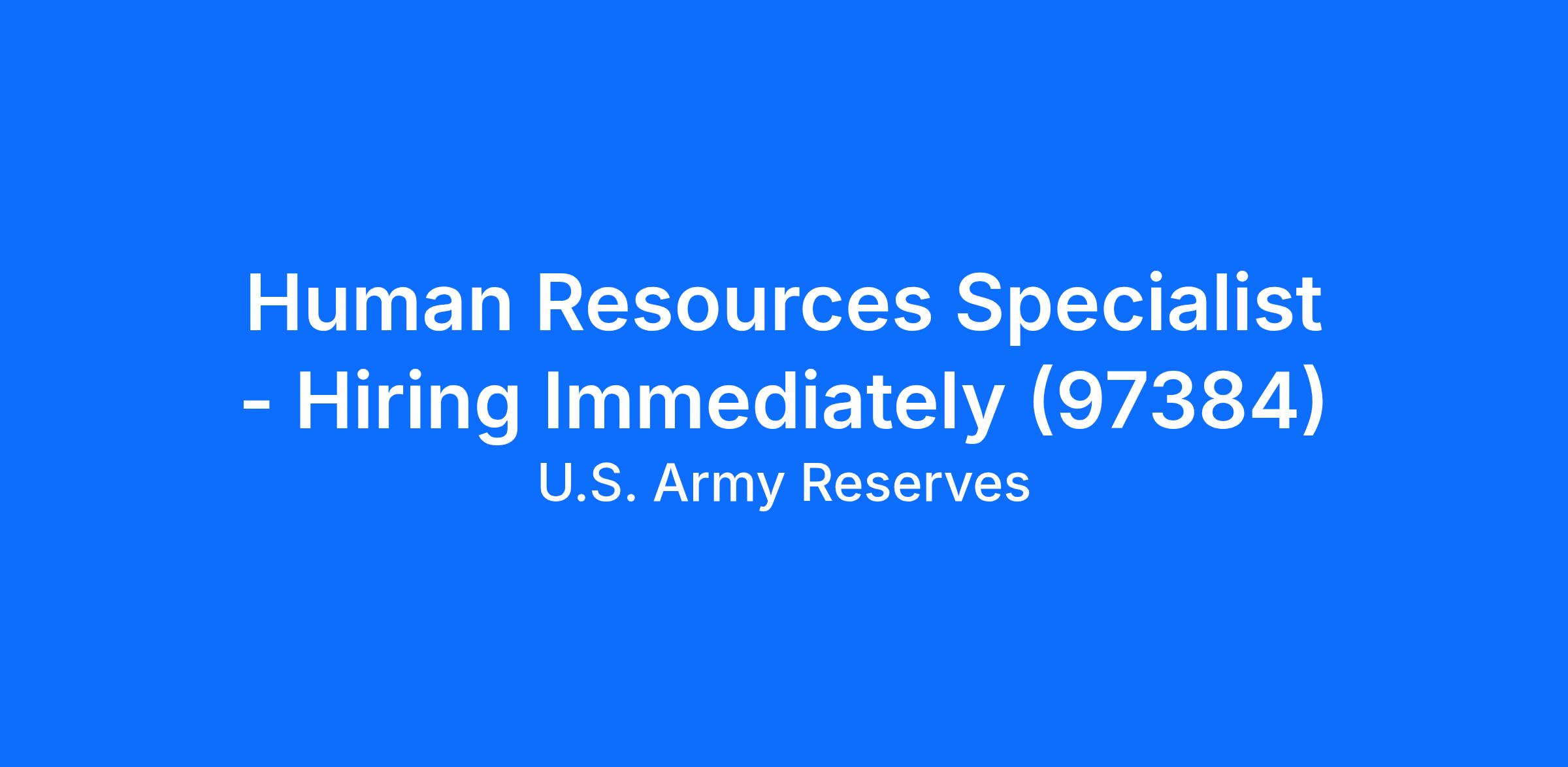 Human Resources Specialist - Hiring Immediately (97384)