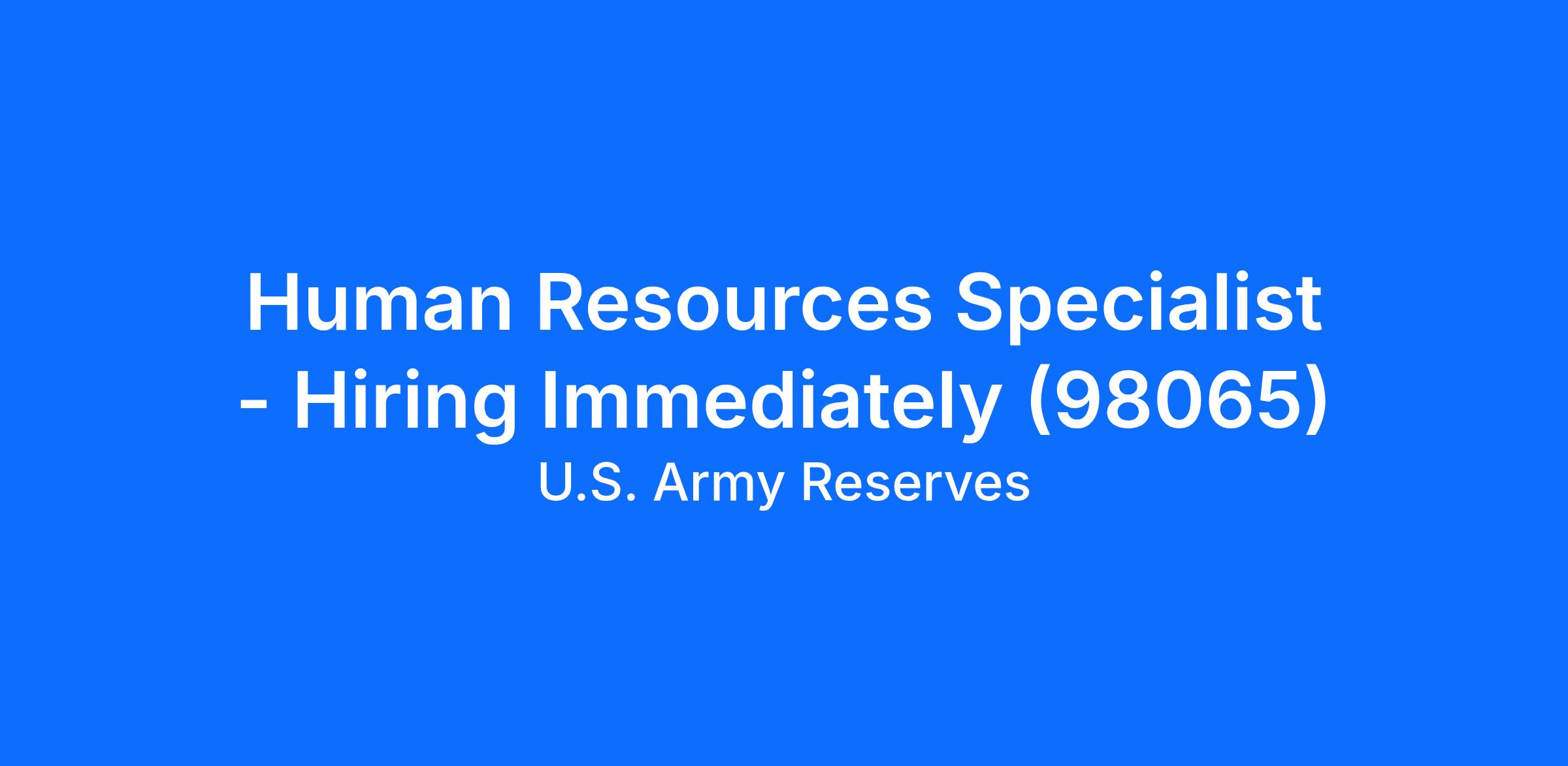 Human Resources Specialist - Hiring Immediately (98065)