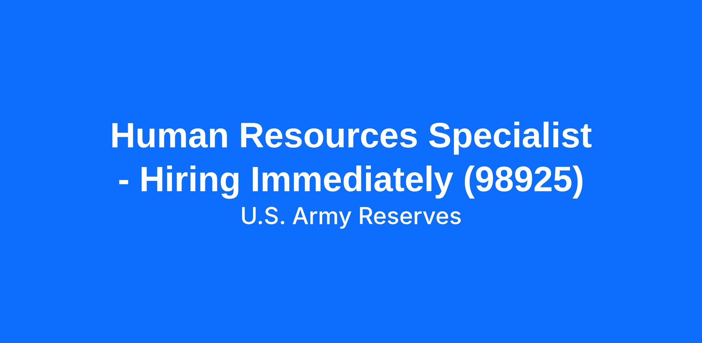 Human Resources Specialist - Hiring Immediately (98925)