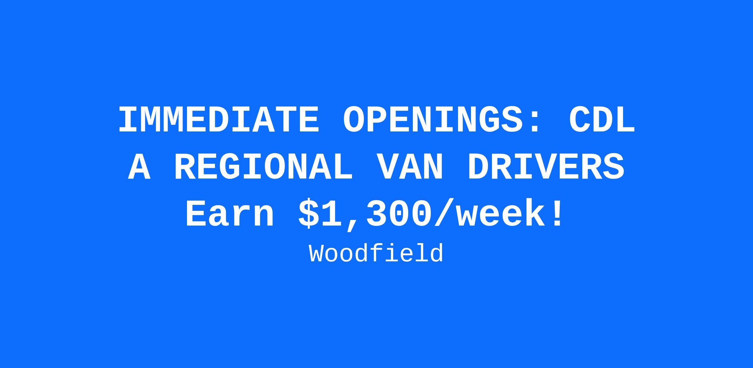 Job Description: IMMEDIATE OPENINGS: CDL A REGIONAL VAN DRIVERS