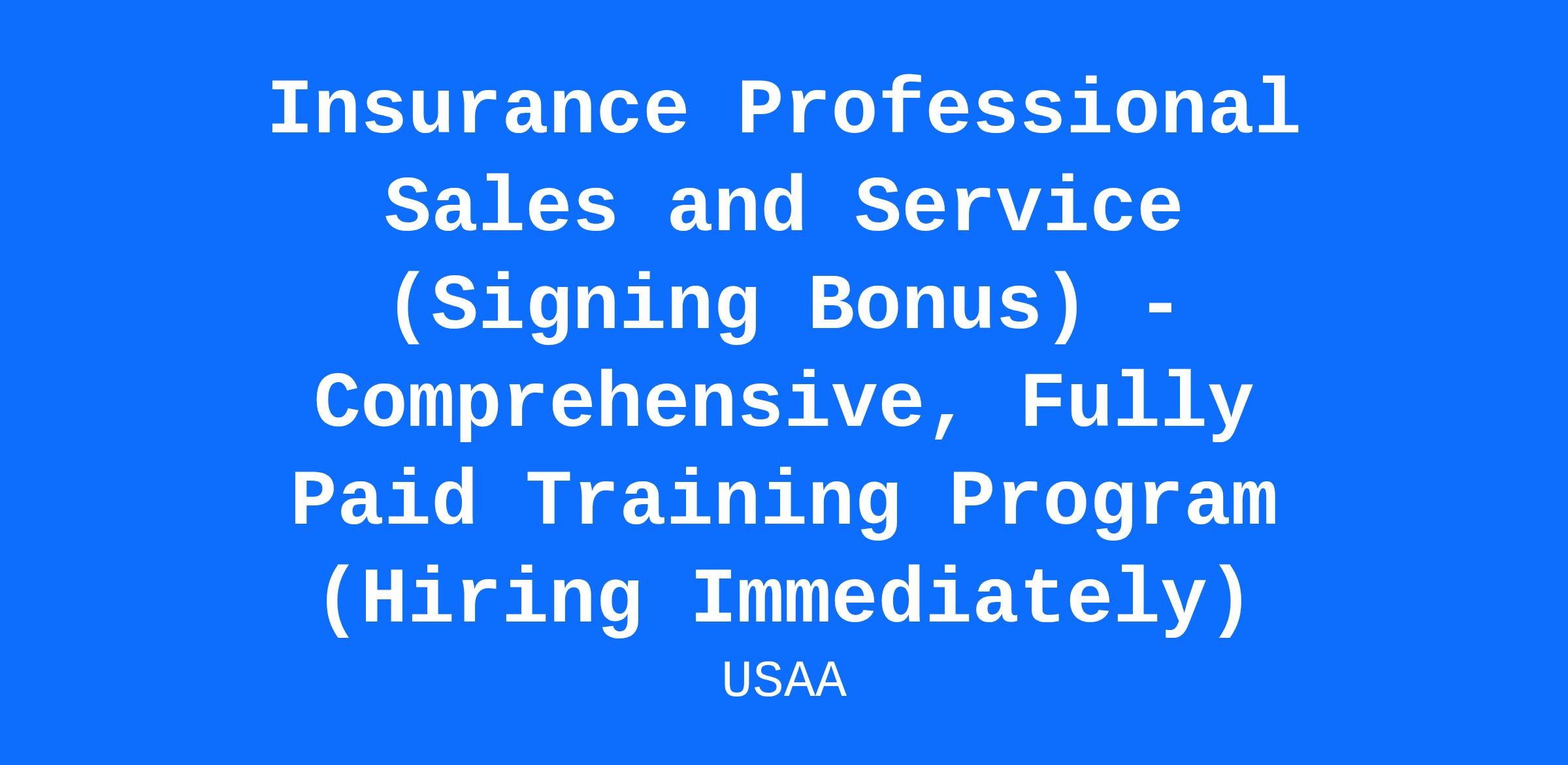 Insurance Professional Sales and Service (Signing Bonus) - Comprehensive, Fully Paid Training Program (Hiring Immediately)