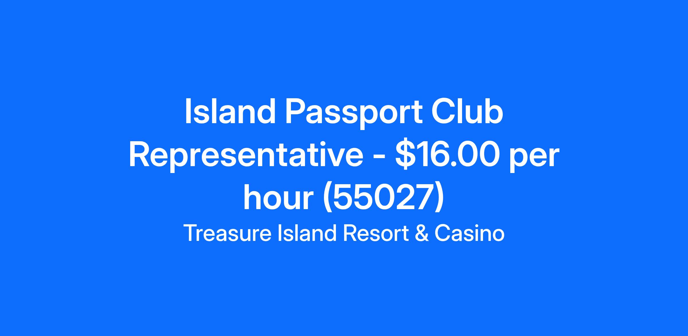 Island Passport Club Representative - $16.00 per hour (55027)