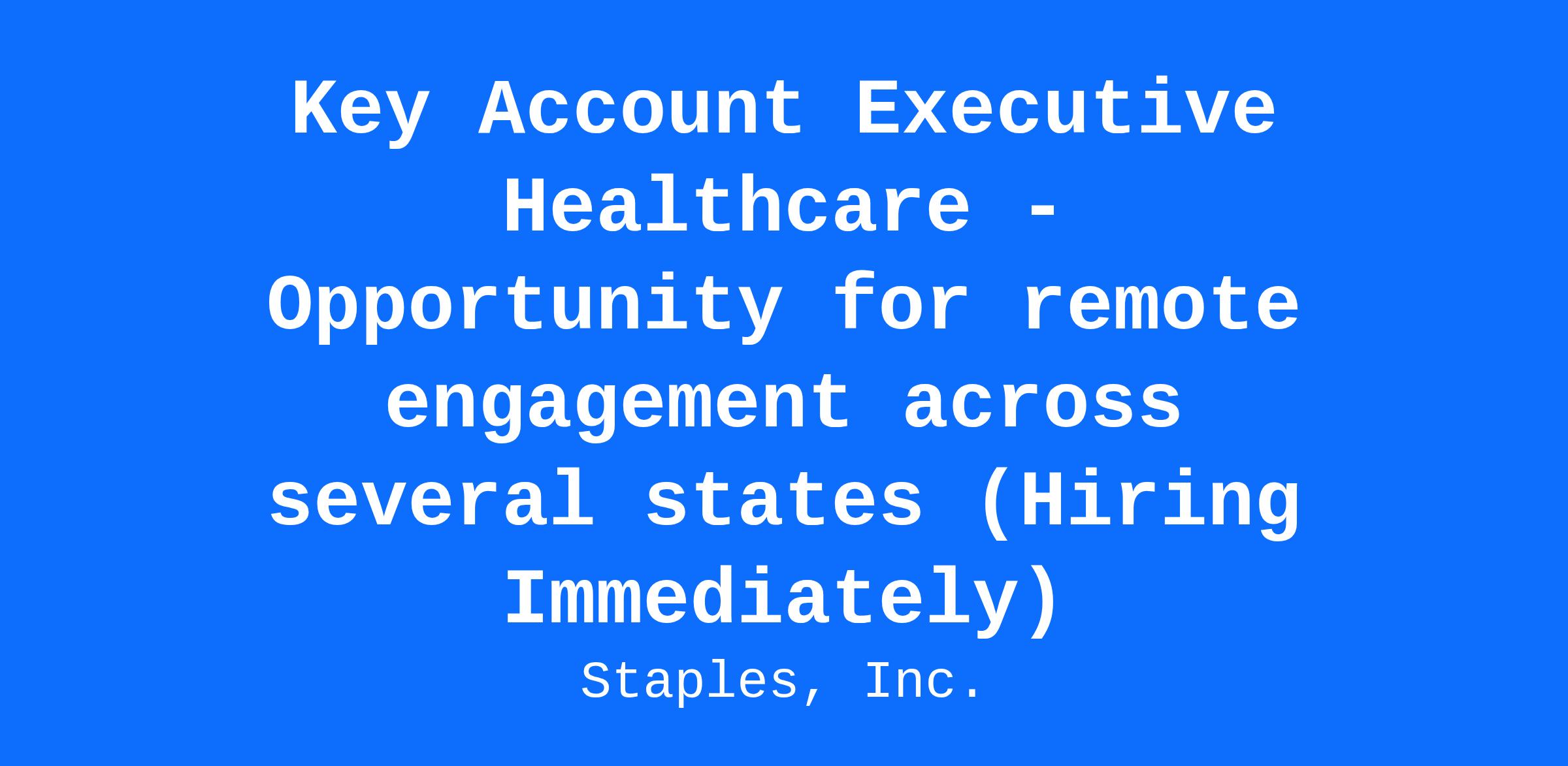 Key Account Executive Healthcare - Opportunity for remote engagement across several states (Hiring Immediately)