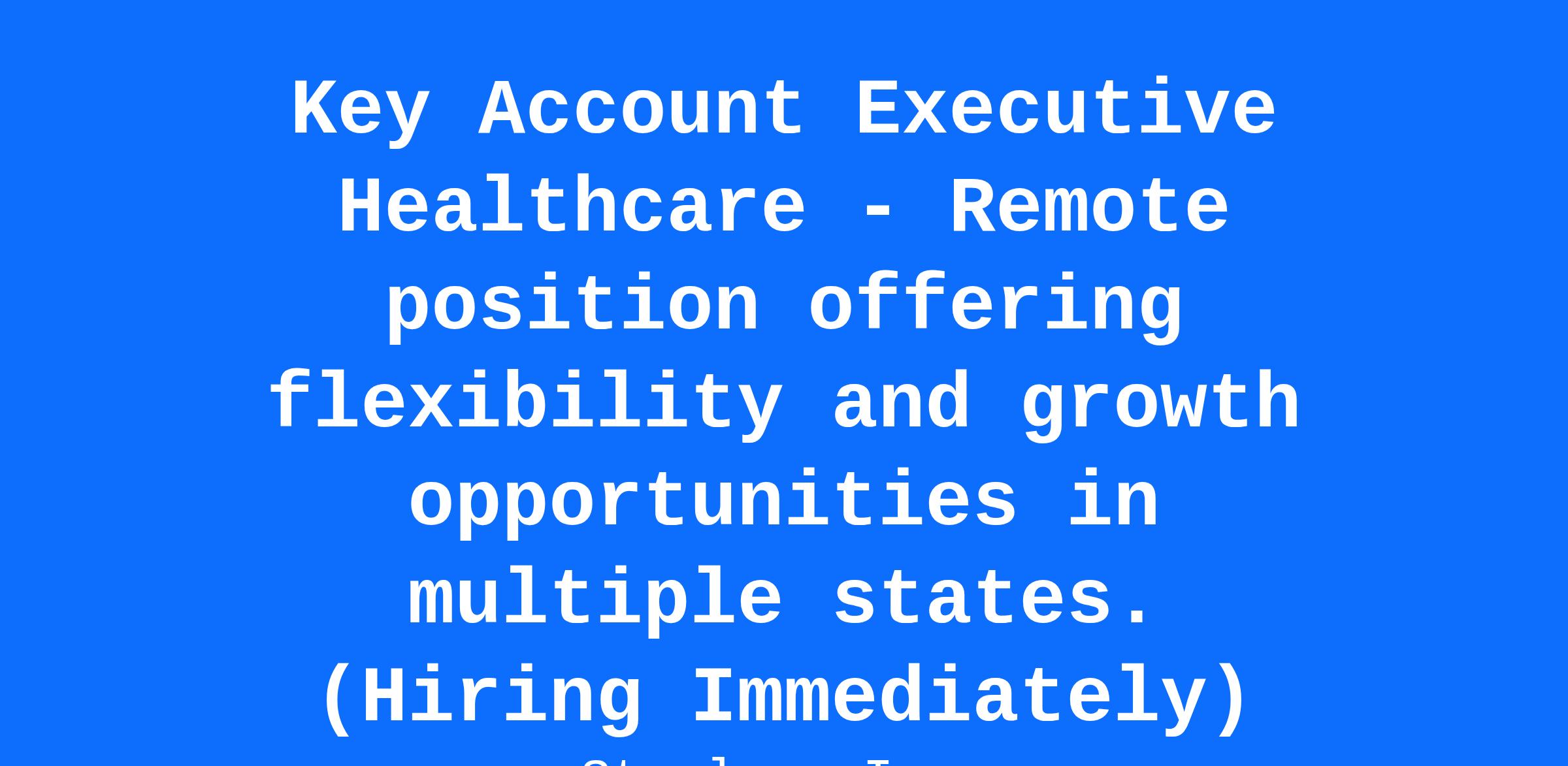 Key Account Executive Healthcare - Remote position offering flexibility and growth opportunities in multiple states. (Hiring Immediately)