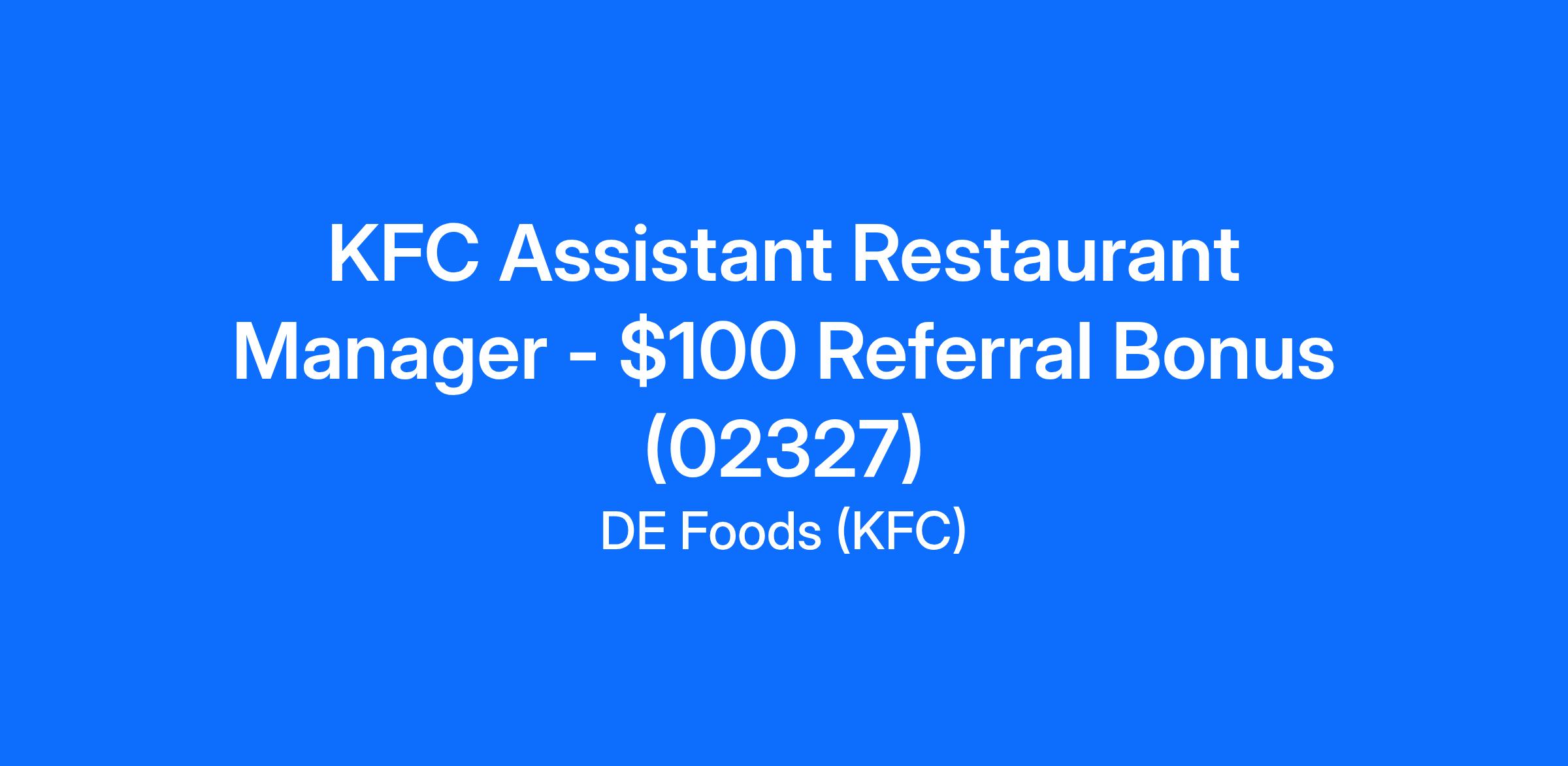 KFC Assistant Restaurant Manager - $100 Referral Bonus (02327)