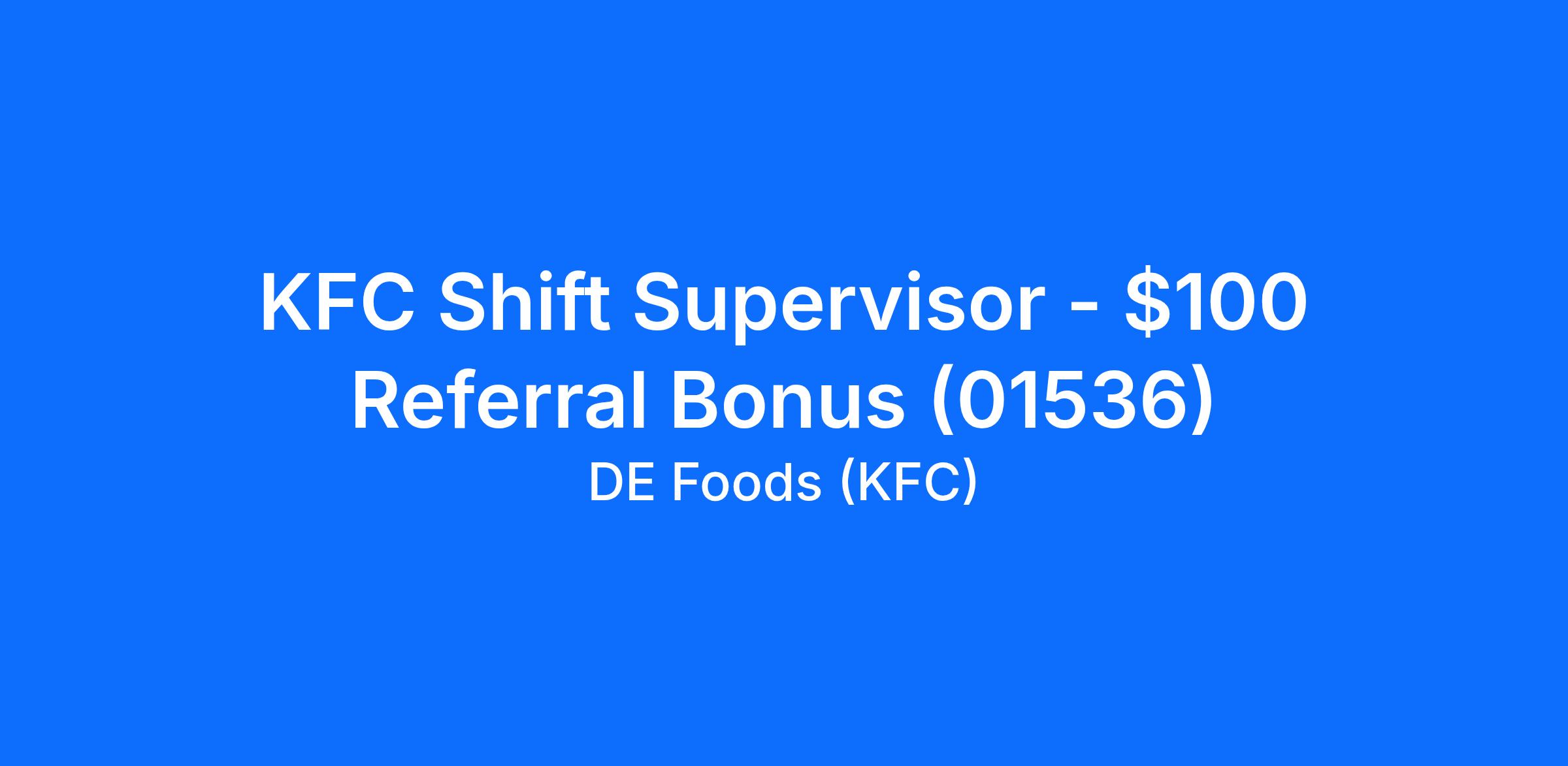 KFC Shift Supervisor - $100 Referral Bonus (01536)