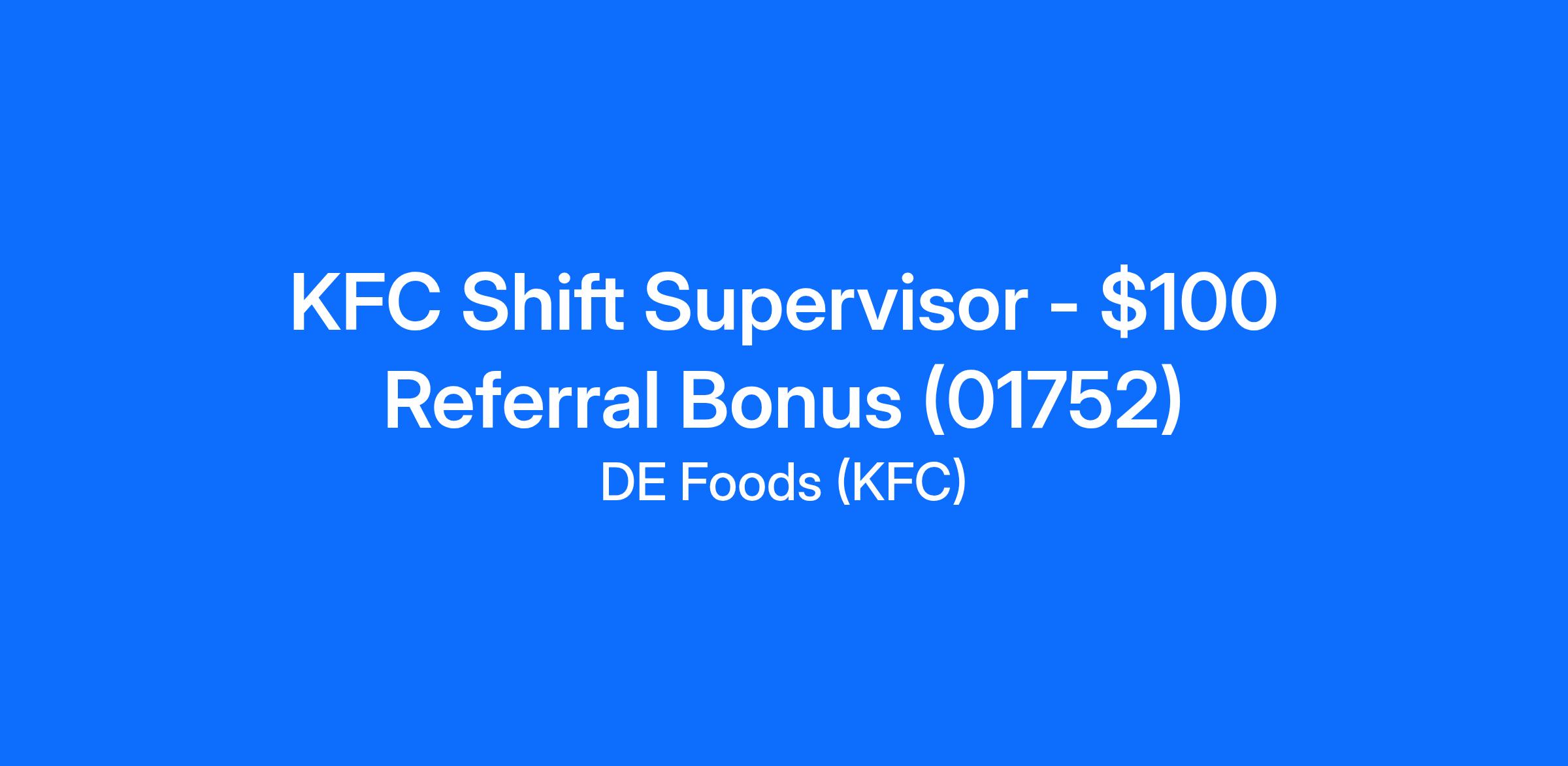 KFC Shift Supervisor - $100 Referral Bonus (01752)
