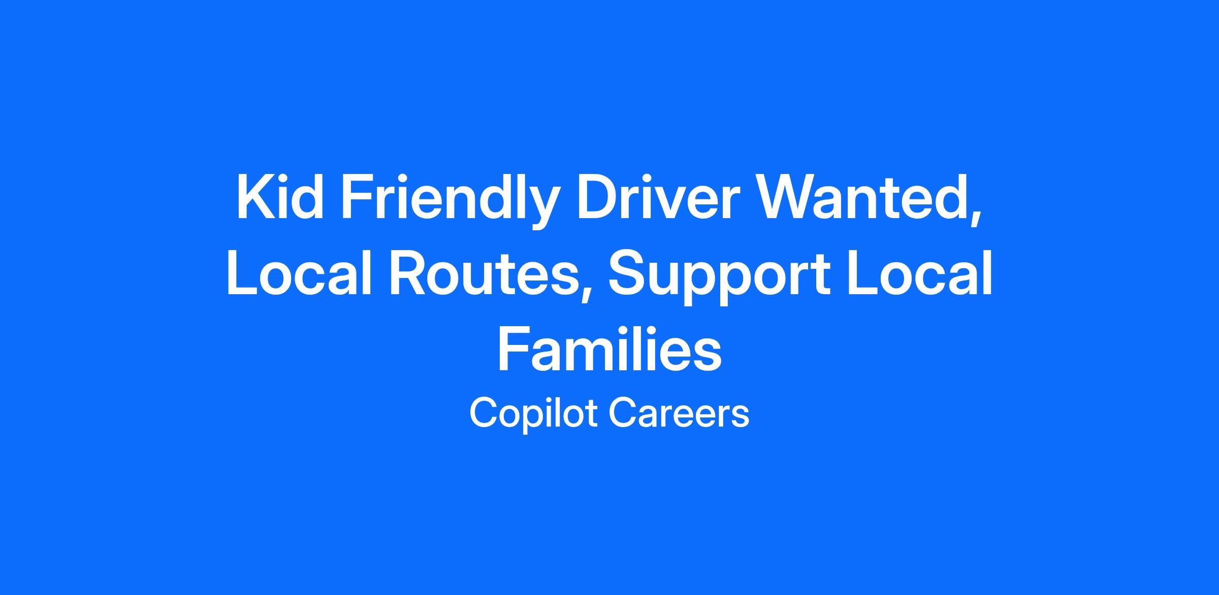 Kid Friendly Driver Wanted, Local Routes, Support Local Families