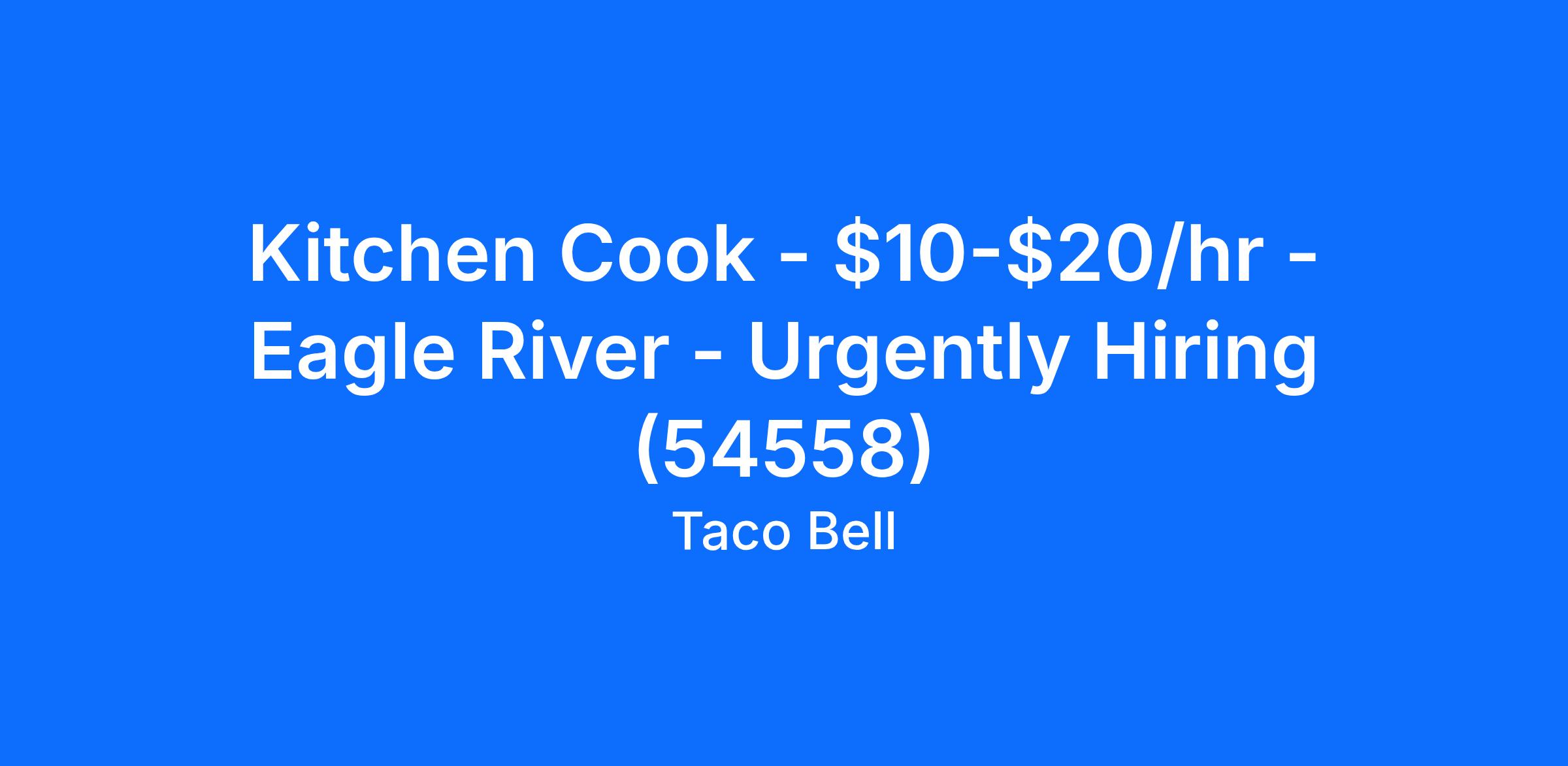 Taco Bell - Eagle River is looking for a hardworking individual to join our kitchen team as a full time or part time Kitchen Cook in Eagle River, WI. As part of the BOH team, you'll be responsible for food preparation that meets or exceeds hospitality and service standards, and must be able to prepare all foods to meet quantity and deadline requirements.