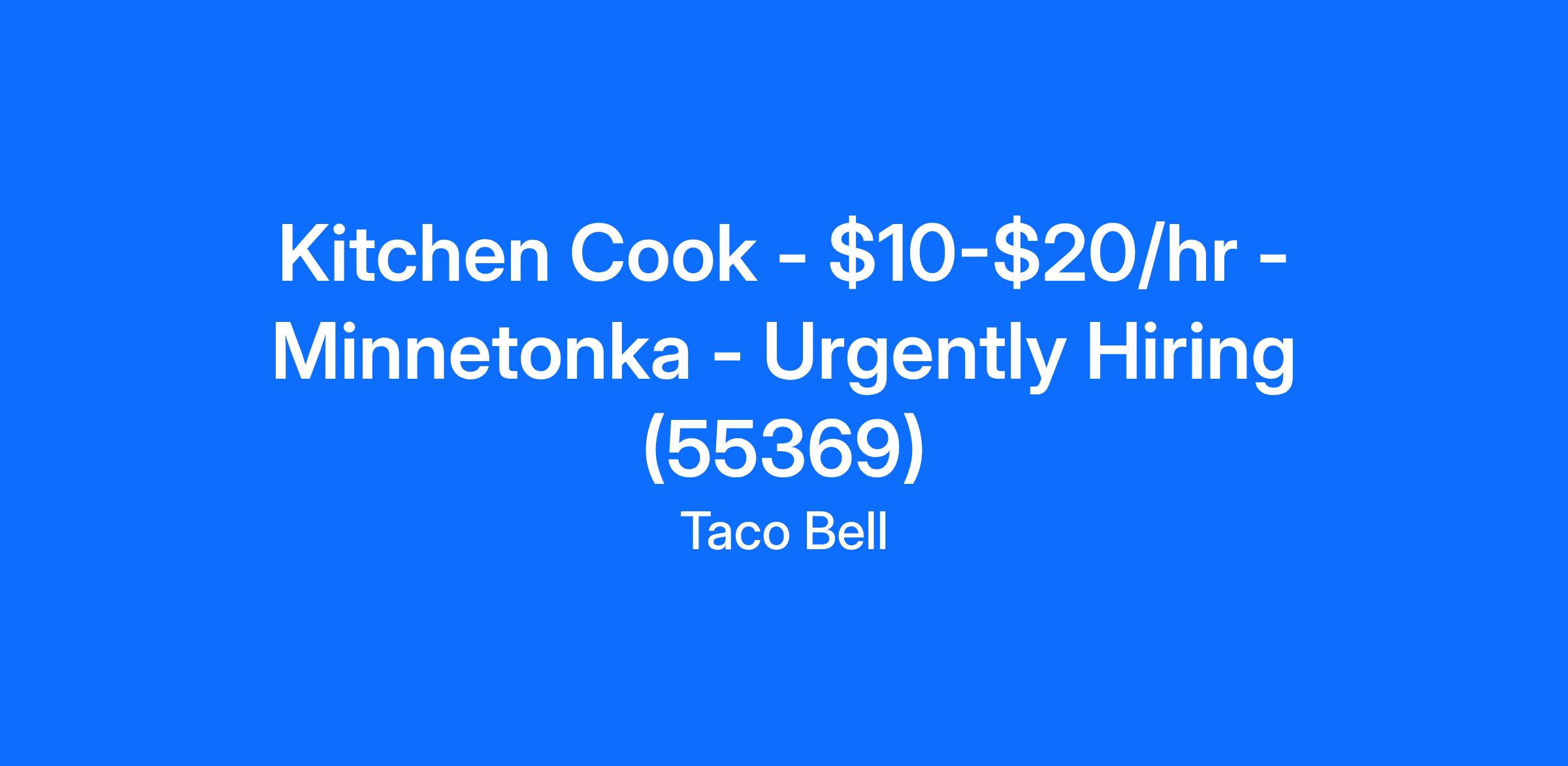 Kitchen Cook - $10-$20/hr - Minnetonka - Urgently Hiring (55369)