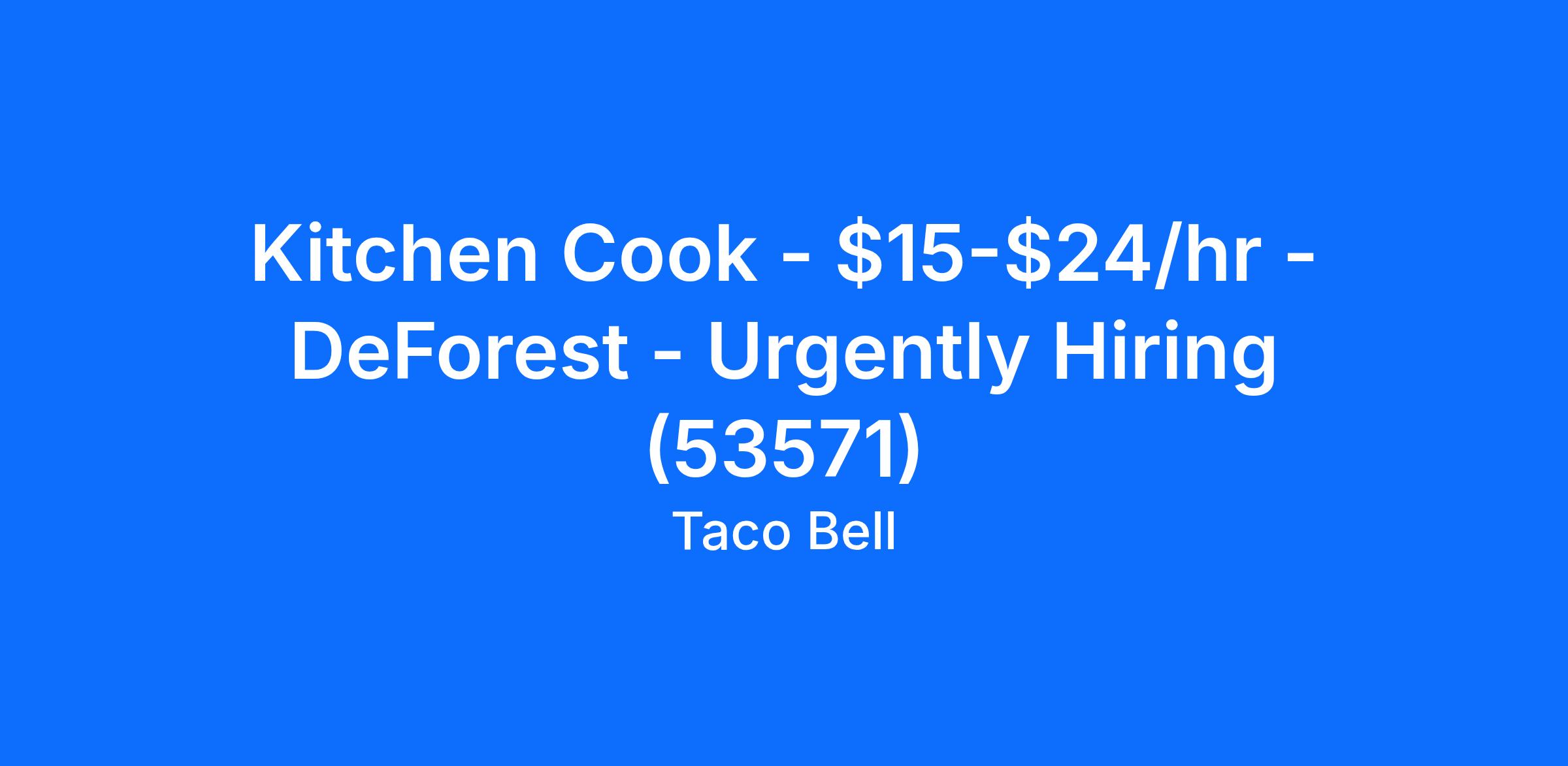 Kitchen Cook - $15-$24/hr - DeForest - Urgently Hiring (53571)