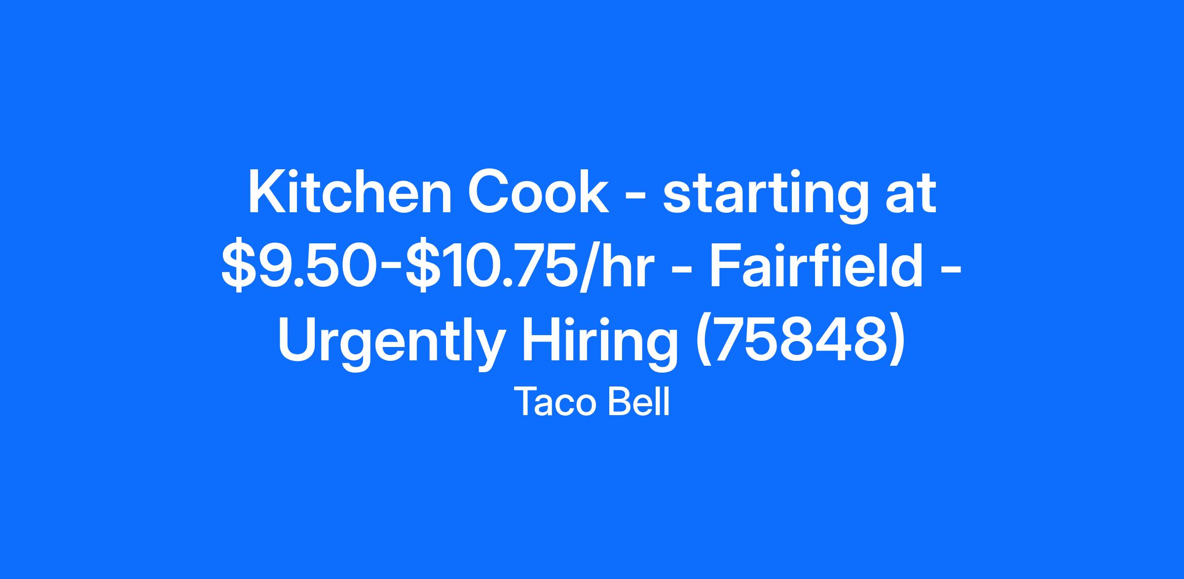 Taco Bell - Fairfield is looking for a hardworking individual to join our kitchen team as a full time or part time Kitchen Cook in Fairfield, TX. As part of the BOH team, you'll be responsible for food preparation that meets or exceeds hospitality and service standards, and must be able to prepare all foods to meet quantity and deadline requirements.