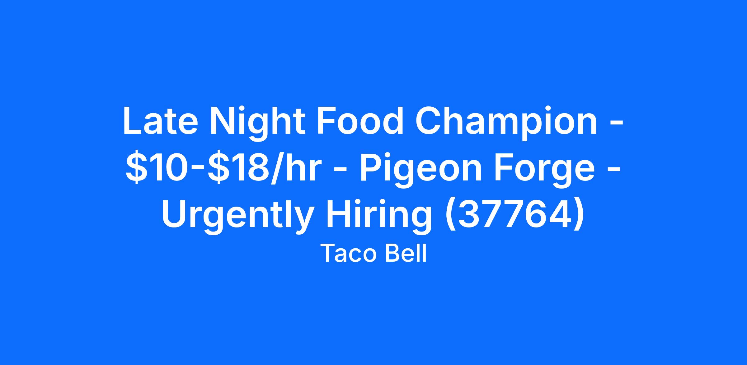 Late Night Food Champion - $10-$18/hr - Pigeon Forge - Urgently Hiring (37764)