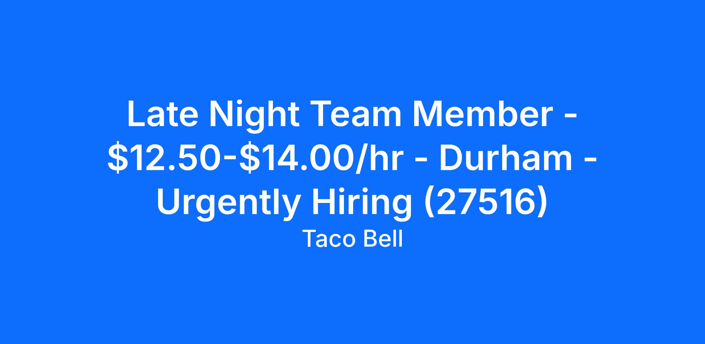 Late Night Team Member - $12.50-$14.00/hr - Durham - Urgently Hiring (27516)